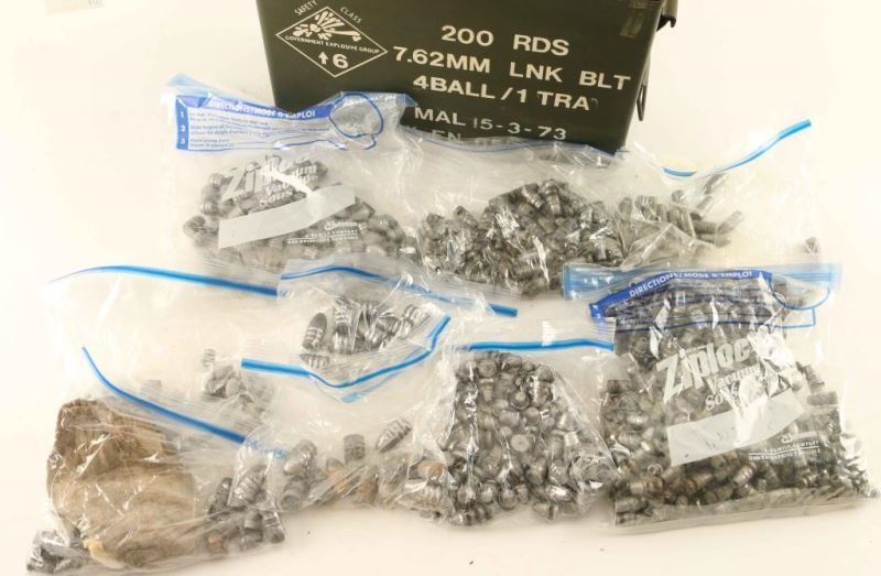 Approx 20 lbs of various lead bullets in ammo can.