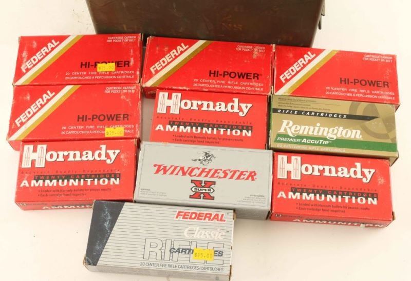 Federal, Winchester, Hornady, Remington in ammo can.