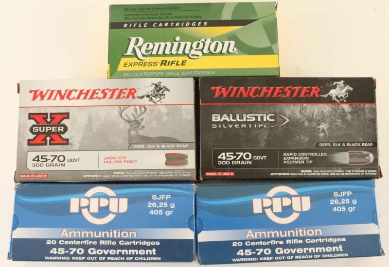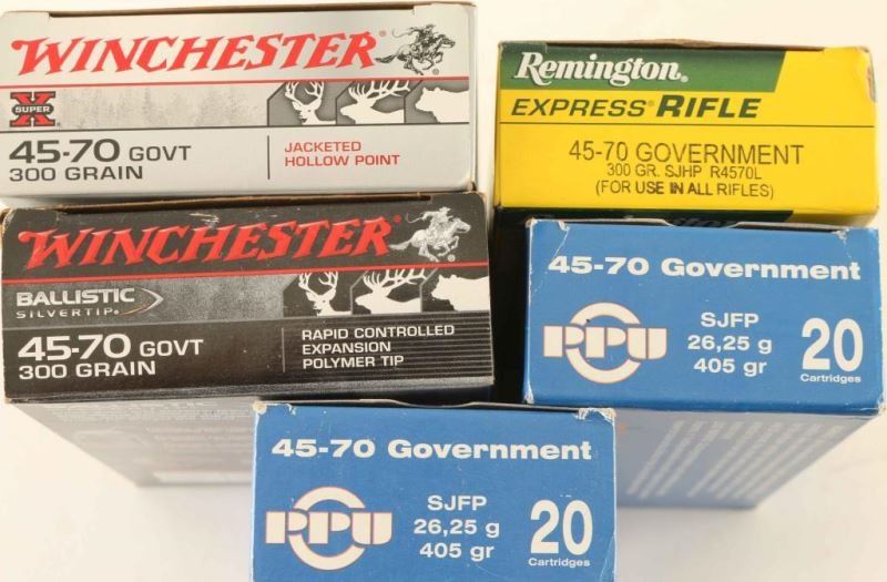 Remington Express Rifle 300 Gr 20 Rds, Winchester Super X 300 Gr 20 Rds, Winchester Ballistic Silvertip 300 Gr 20 Rds, and PPU 405 Gr 40 Rds.