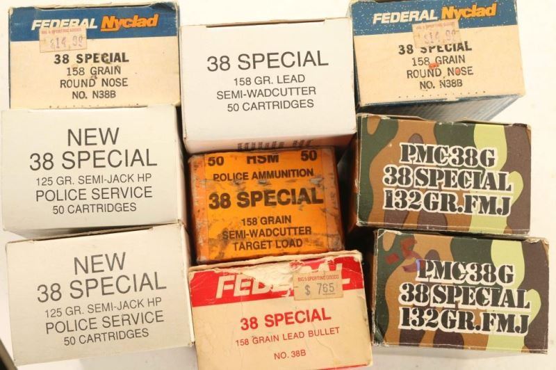 Includes approx 400 Rds 38 Spl 150Gr semi wad cutters, Federal 156Gr roundnose, El Dorado Star Power 38 Spl +P and others.