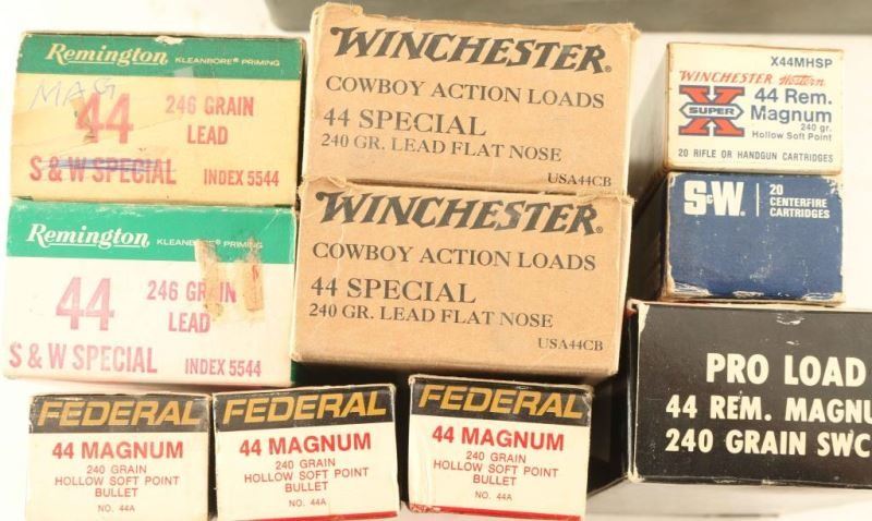 400+ Rds including 2 boxes of Winchester Cowboy Action, 3 boxes Federal 44 Mag, and others.
