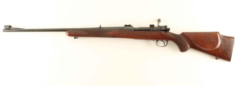 Bolt action 30-06 Springfield with a blued finish in good condition. Bolt shows scattered light pitting. Scope mounts, hooded front sight and Monte Carlo stock. NRA Very Good ***Modern Firearm***