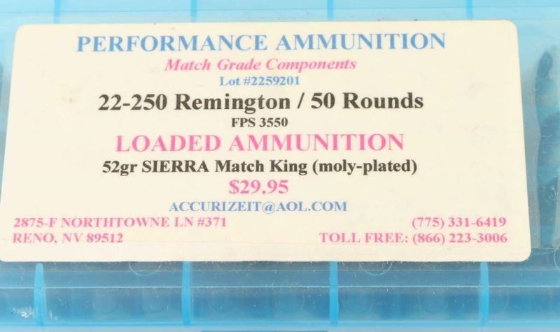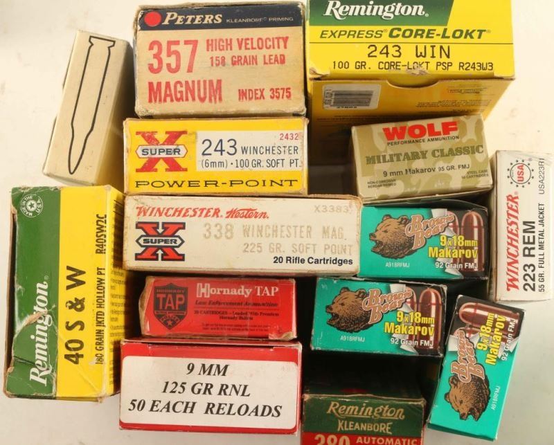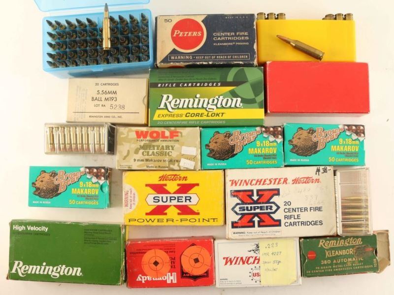 Includes reloads; Hornady 17HMR 75Rds, CCI 17HMR 50Rds, 5.56mm ball M193 20Rds, Remington 243Win 20Rds, Western 243Win 18Rds, Brown Bear 9x18mm Makarov 100+Rds, Wolf 9mm Makarov 43Rds, and more.