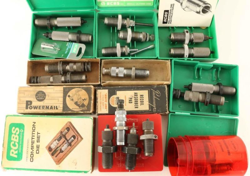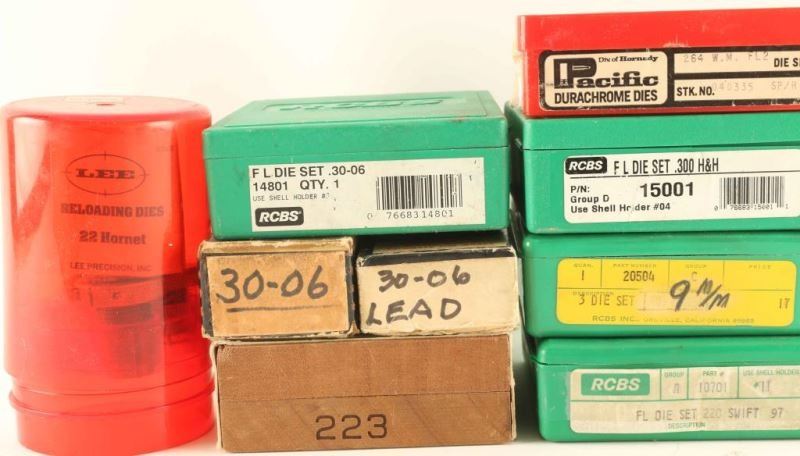 Including; RCBS Competition Die Set-1 piece missing, RCBS 220 Swift, RCBS 9mm, RCBS 300 H&H, Pacific 264 WW FL2, RCBS 30-06, Lee 22 Hornet and 9 other parts.