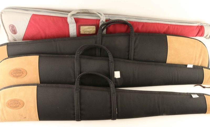 (3) Gaylan's black canvas and tan faux suede and (1) Gun Club in red and gray canvas.