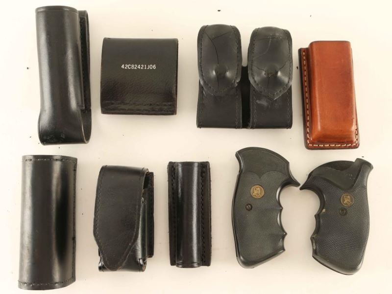 All leather including; Safariland, Gould & Goodrich and others. Also includes (2) rubber pachmayr grips.