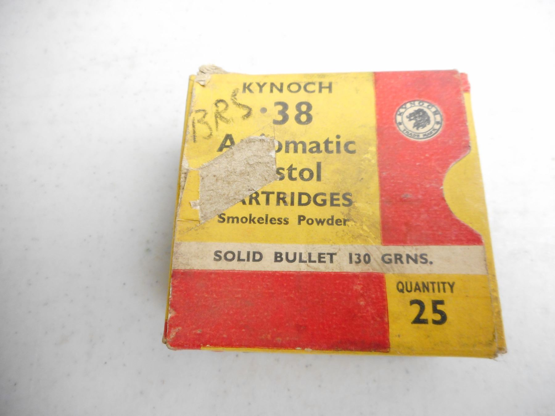 KYNOCH 38 AUTO AMMO , 25 RNDS 130 GRAIN SOLID BULLET