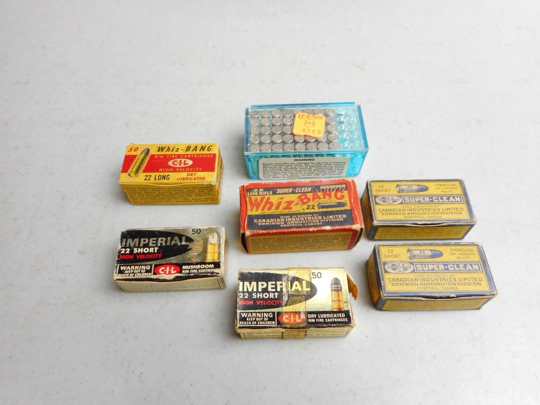 ASSORTED 22 AMMO , 260 RNDS INCLUDES ANTIQUE CIL WHIZBANGS 22 LR, SUPER-CLEAN 22 SHORT, & IMPERIAL 22 SHORT