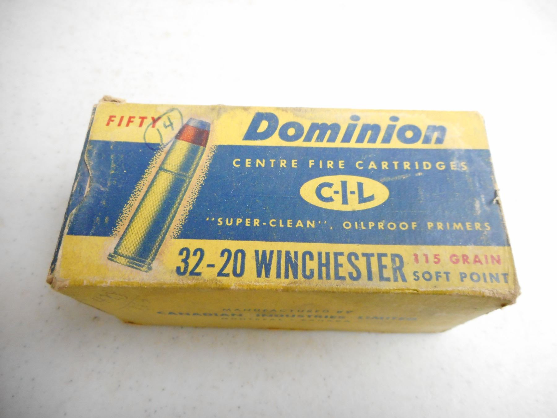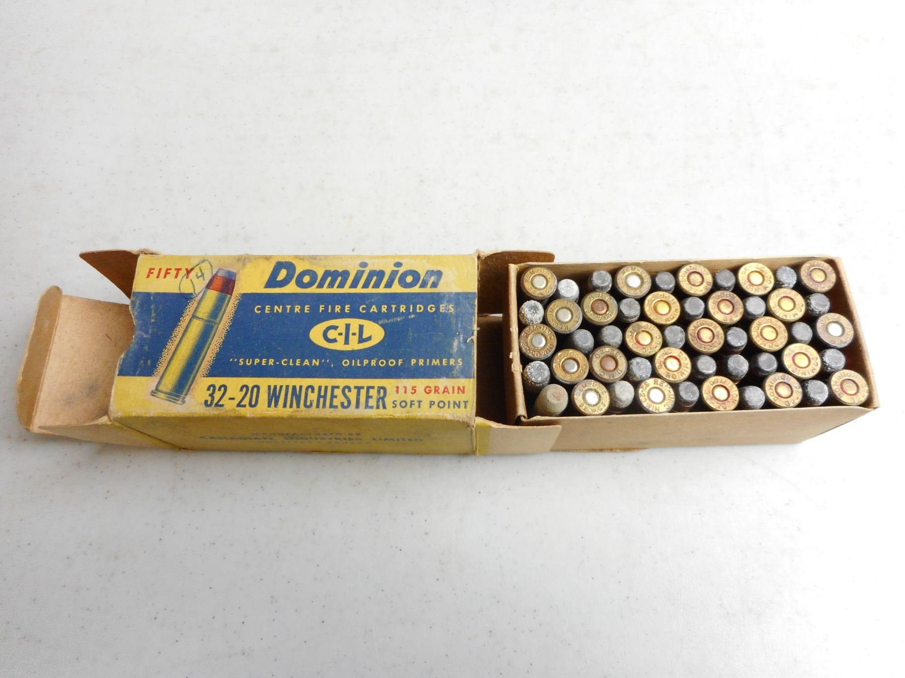 ASSORTED ANTIQUE 32-20 WIN AMMO , 50 RNDS MOSTLY DOMINION 115 GRAIN SP