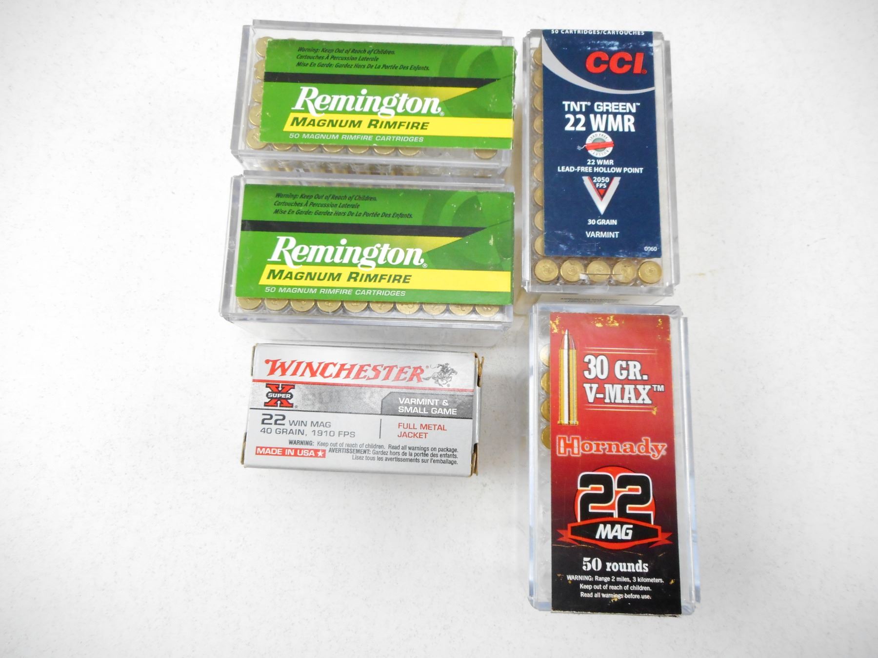ASSORTED 22 WIN MAG AMMO , 186 RNDS INCLUDES SEALED REMINGTON 40 GRAIN PSP CASE & SEALED CCI TNT GREEN 30 GRAIN VARMINT
