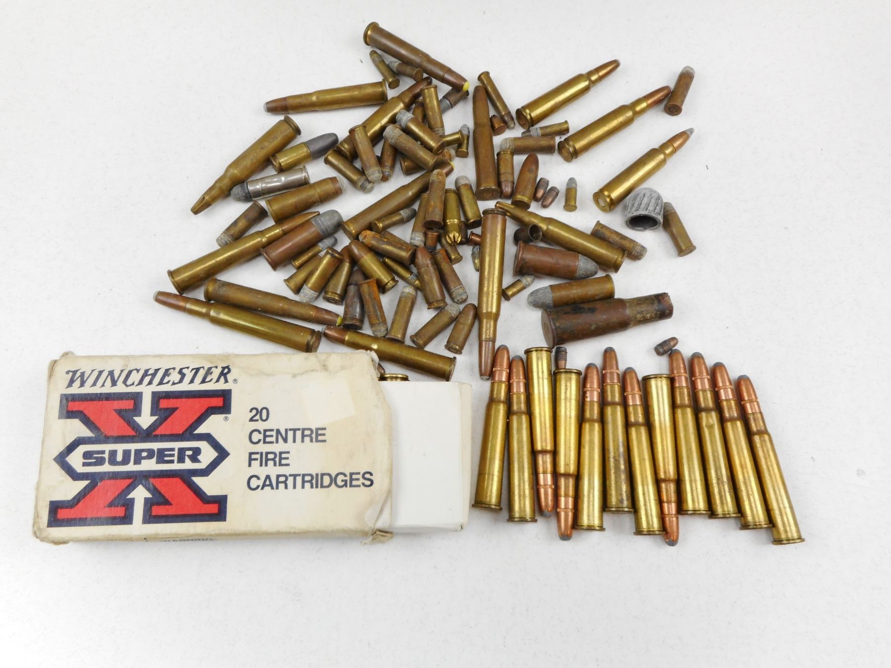 ASSORTED AMMO INCLUDES ANTIQUES , APPROX 94 RNDS INCLUDES 16 RNDS 30-30 WIN AMMO, 12 RNDS 303 BRITISH, AND LOOSE ASSORTED AMMO INCLUDES 300 SAVAGE, 22 LR, 9MM AND MORE