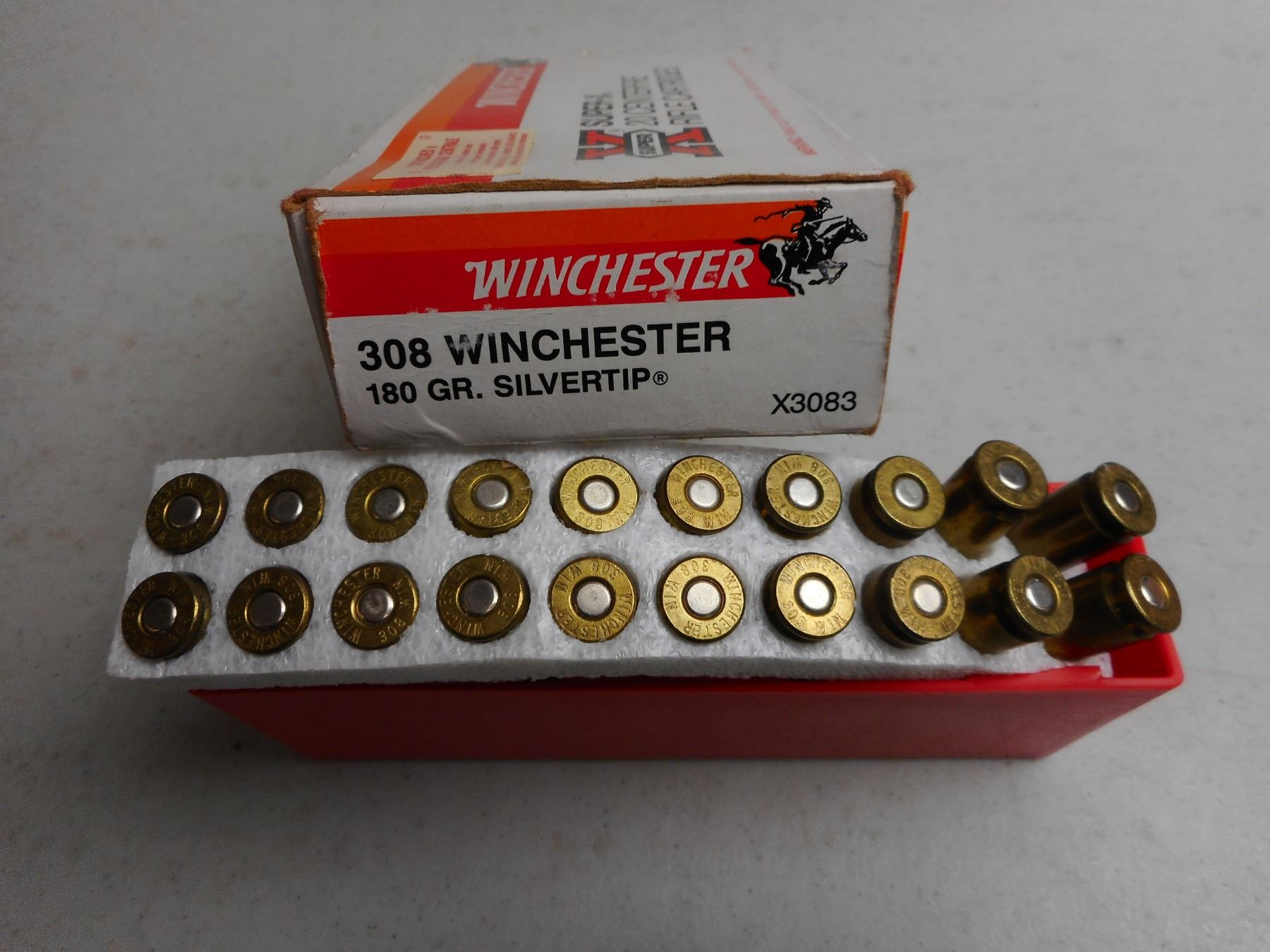 ASSORTED 308 WIN & 45 ACP AMMO/RELOADS , 38 RNDS INCLUDES: WINCHESTER 308 SILVERTIP & 45 ACP IN PLASTIC AMMO CASE