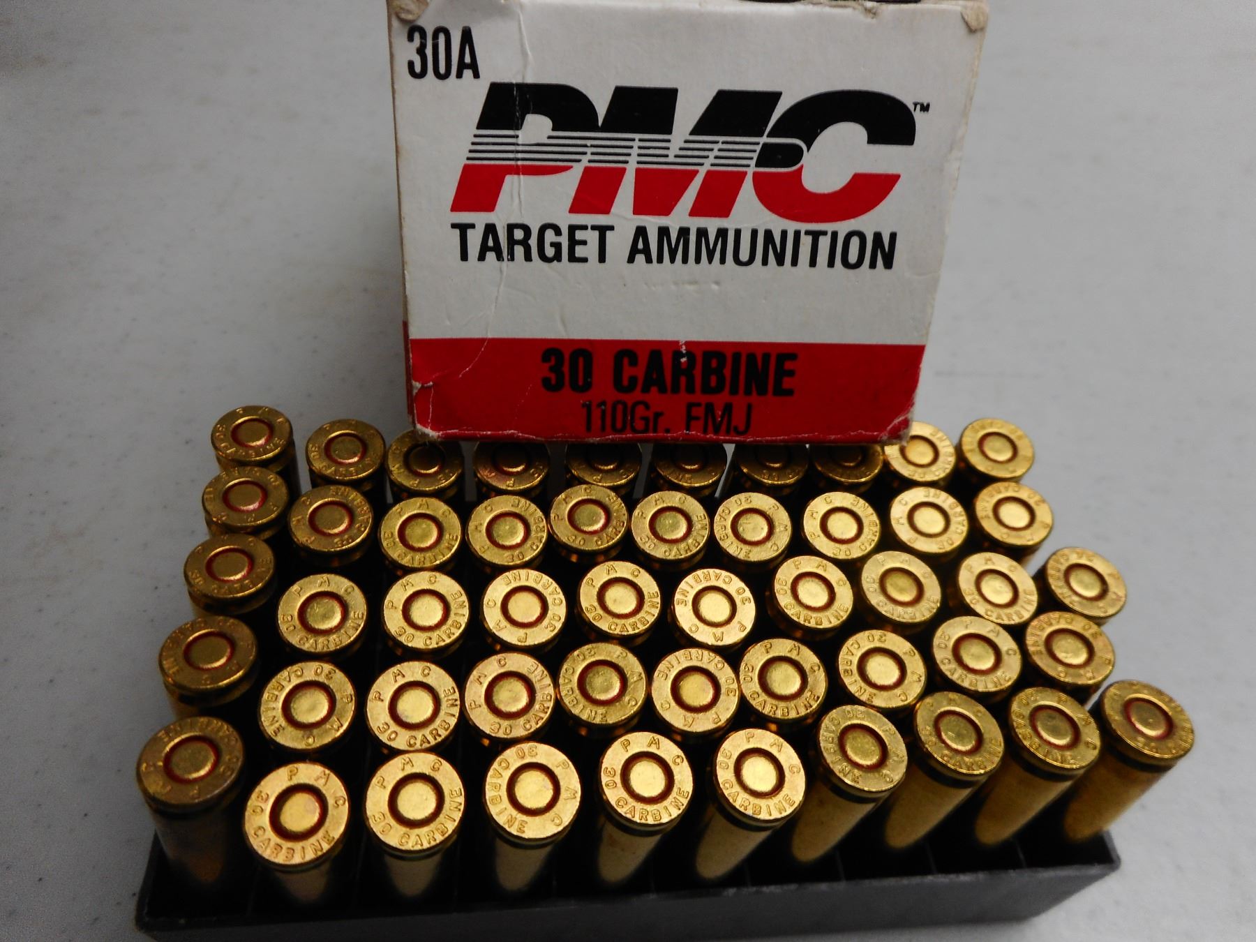 ASSORTED 30 CARBINE AMMO , 100 RNDS INCLUDES PMC 110 GRAIN FMJ