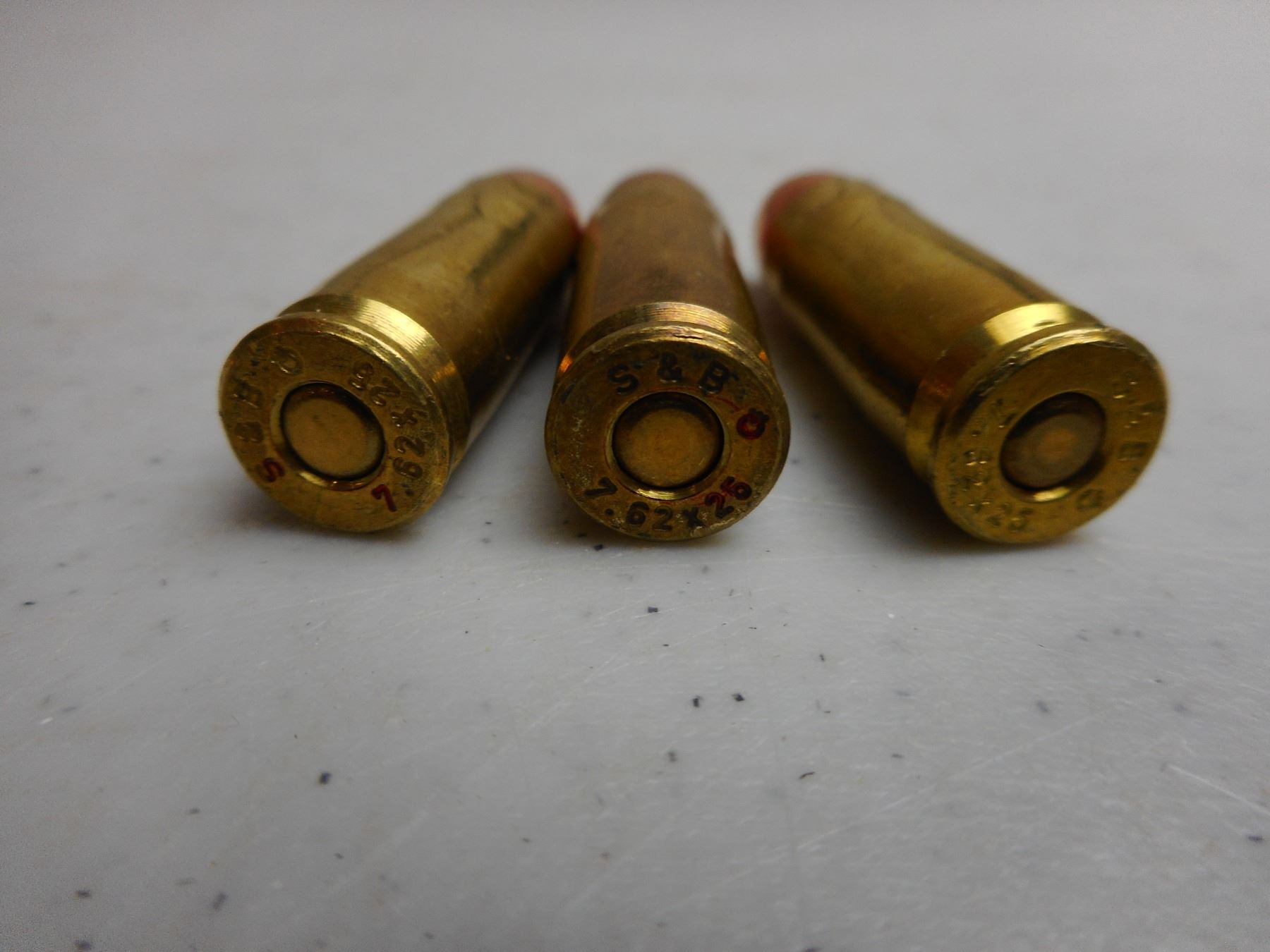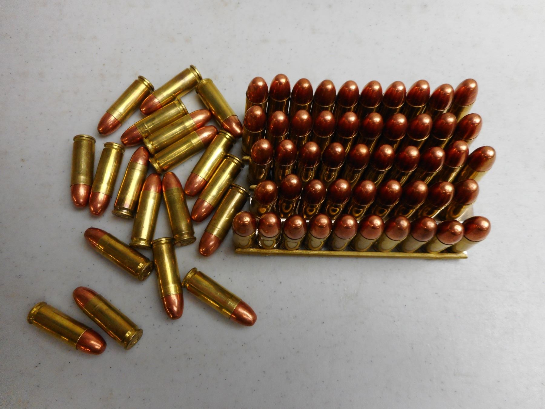 ASSORTED 7.62 X 25 AMMO WITH STRIPPER CLIPS , 68 RNDS 5 STRIPPER CLIPS