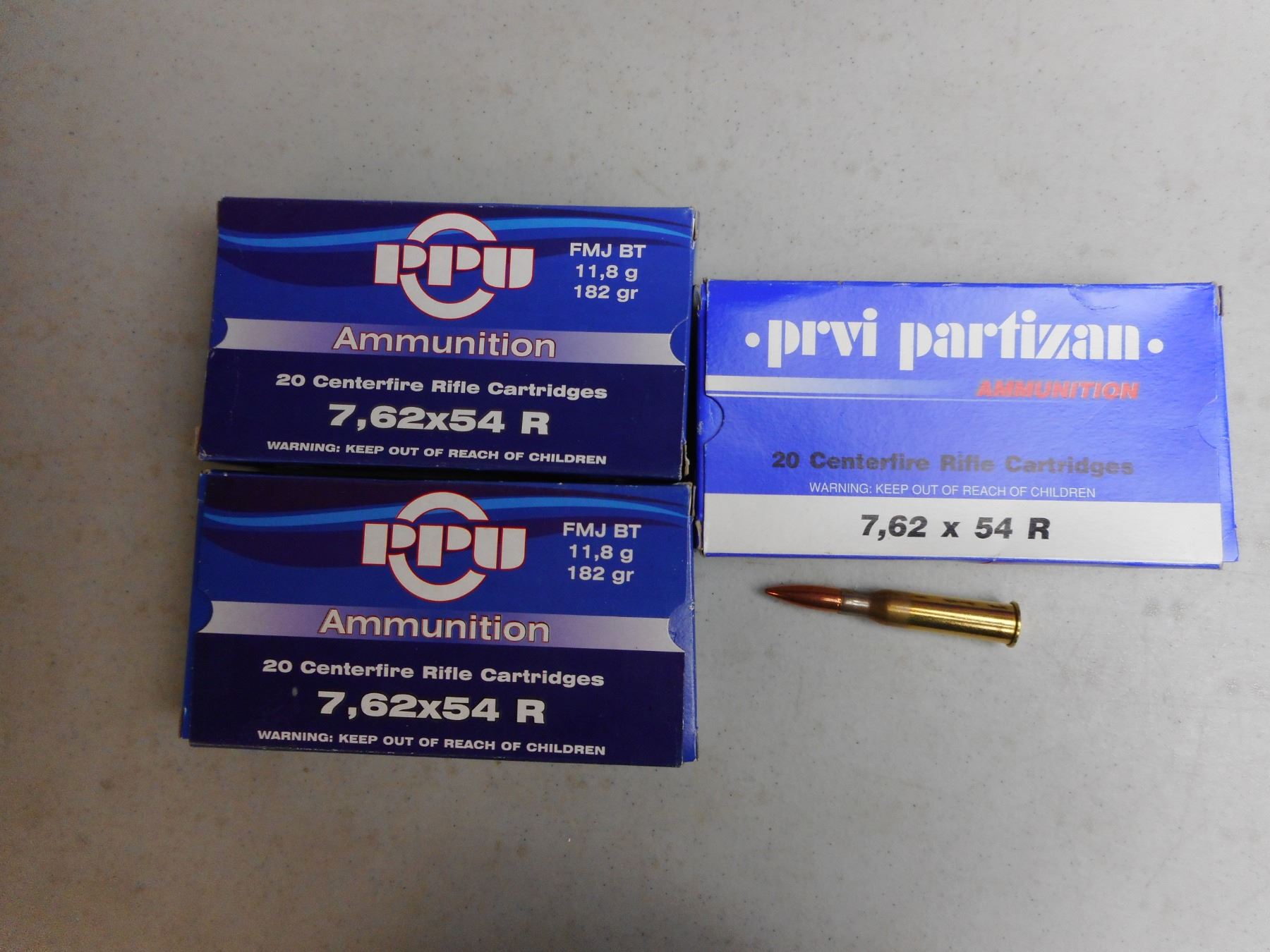 PPU 7.62 X 54R AMMO , 61 RNDS 182 GRAIN FMJ