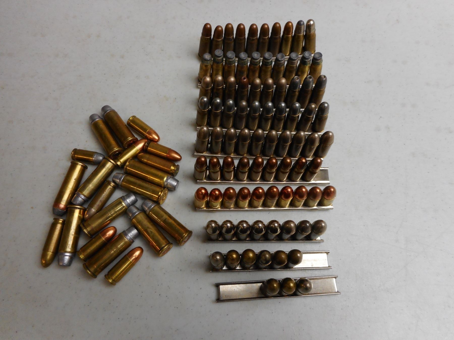 ASSORTED PISTOL AMMO , 106 RNDS INCLUDES 7.62 TOKAREV ON STRIPPER CLIPS, 9MM & 44 REM MAG