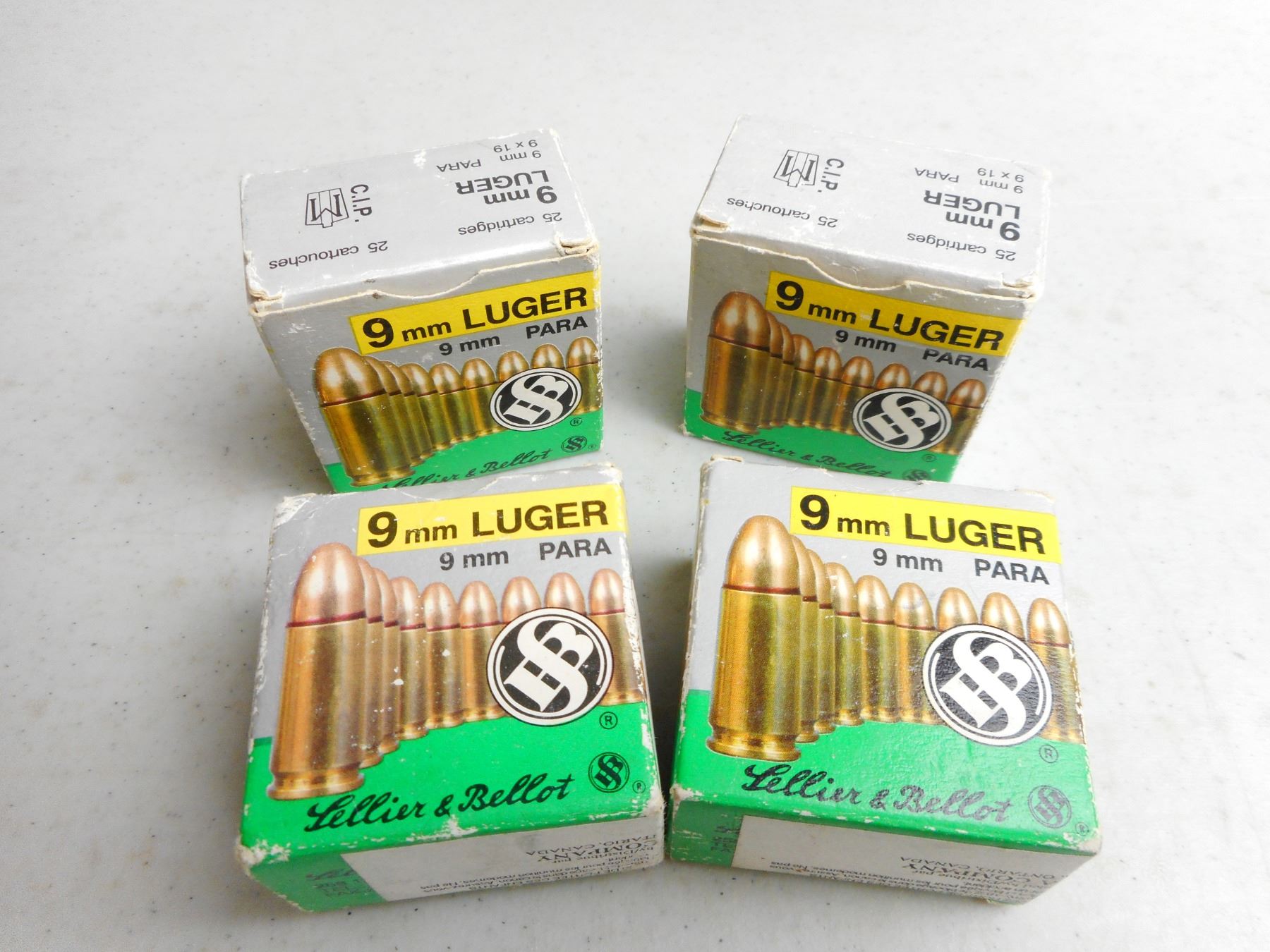 SELLIER & BELLOT 9MM LUGER AMMO , 93 RNDS 115 GRAIN