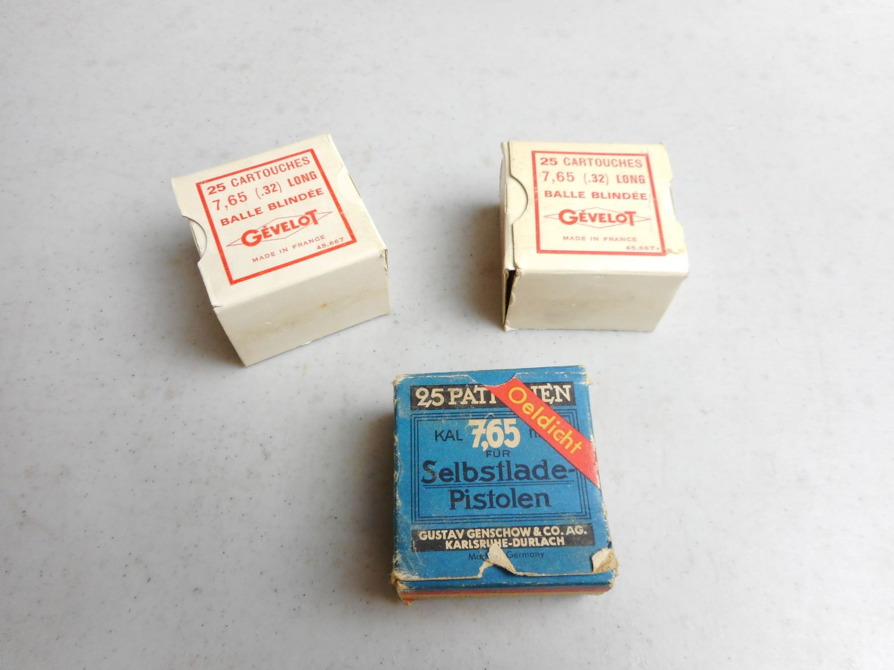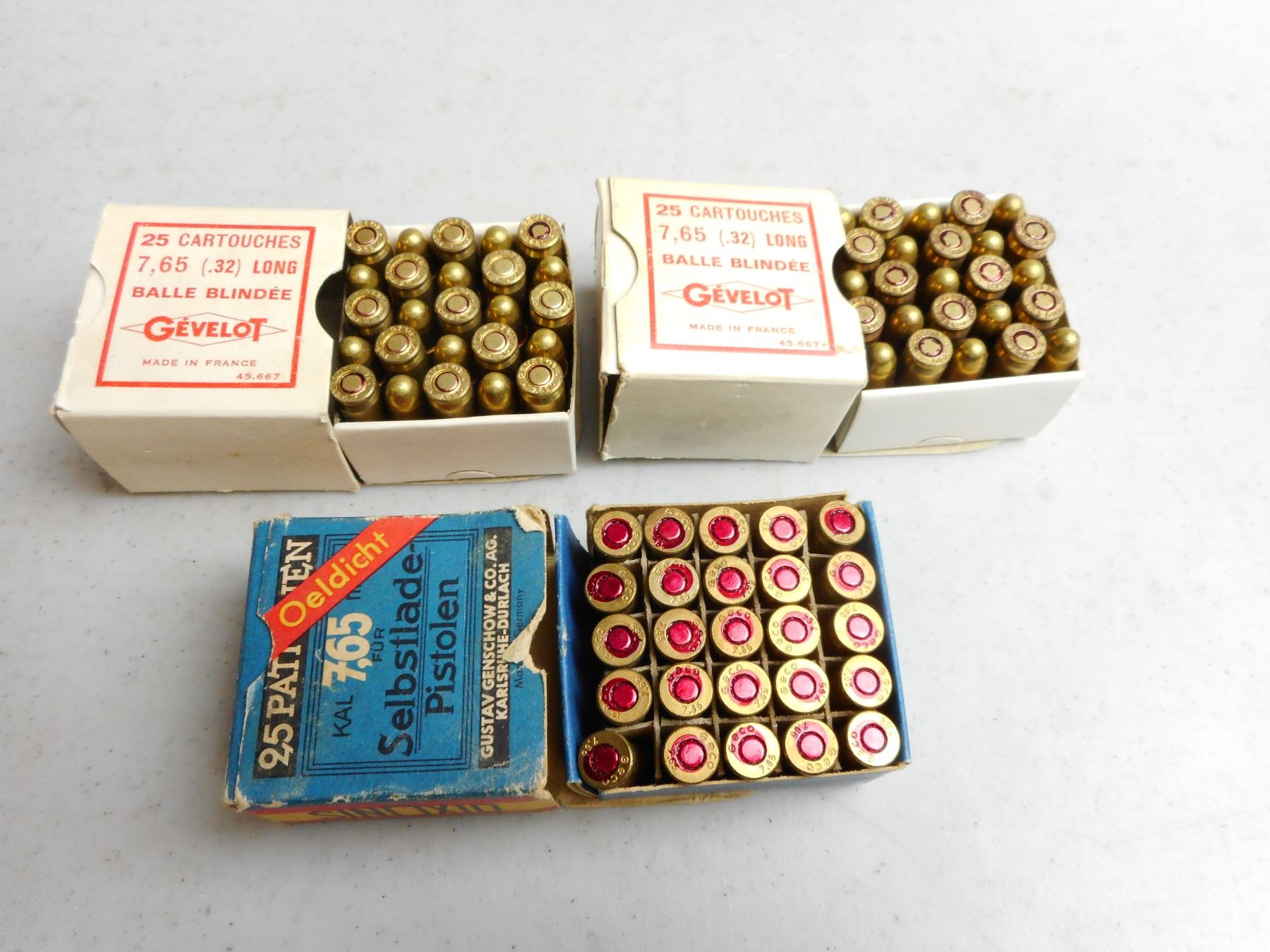 ASSORTED 7.65MM (32) AMMO , 75 RNDS INCLDUES GEVELOT 32 LONG & GECO 32
