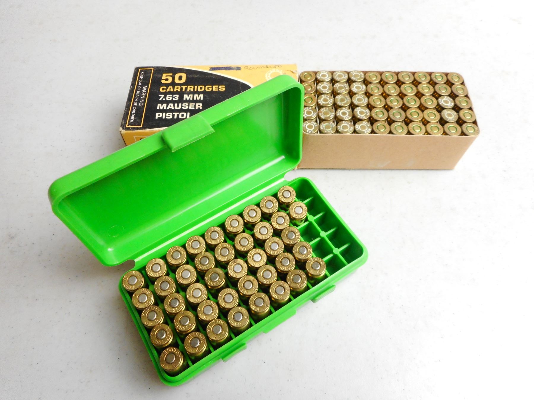 ASSORTED 7.65 LUGER & 7.73 MAUSER AMMO/RELOADS , 92 RNDS INCLUDES CENTURY ARMS INC 7.63 MM MAUSER