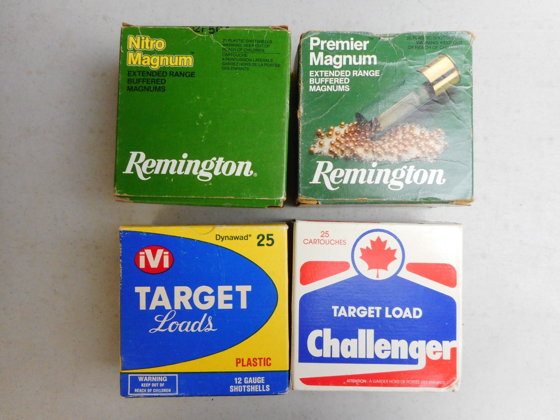ASSORTED 12 GA 2 3/4" & 3" AMMO , 85 RNDS INCLUDES REMINGTON NITRO MAGNUM 6 SHOT, CHALLENGER 8 SHOT & IVI TARGET LOADS 7 1/2 SHOT