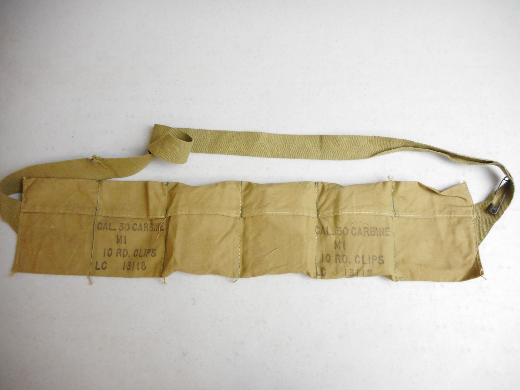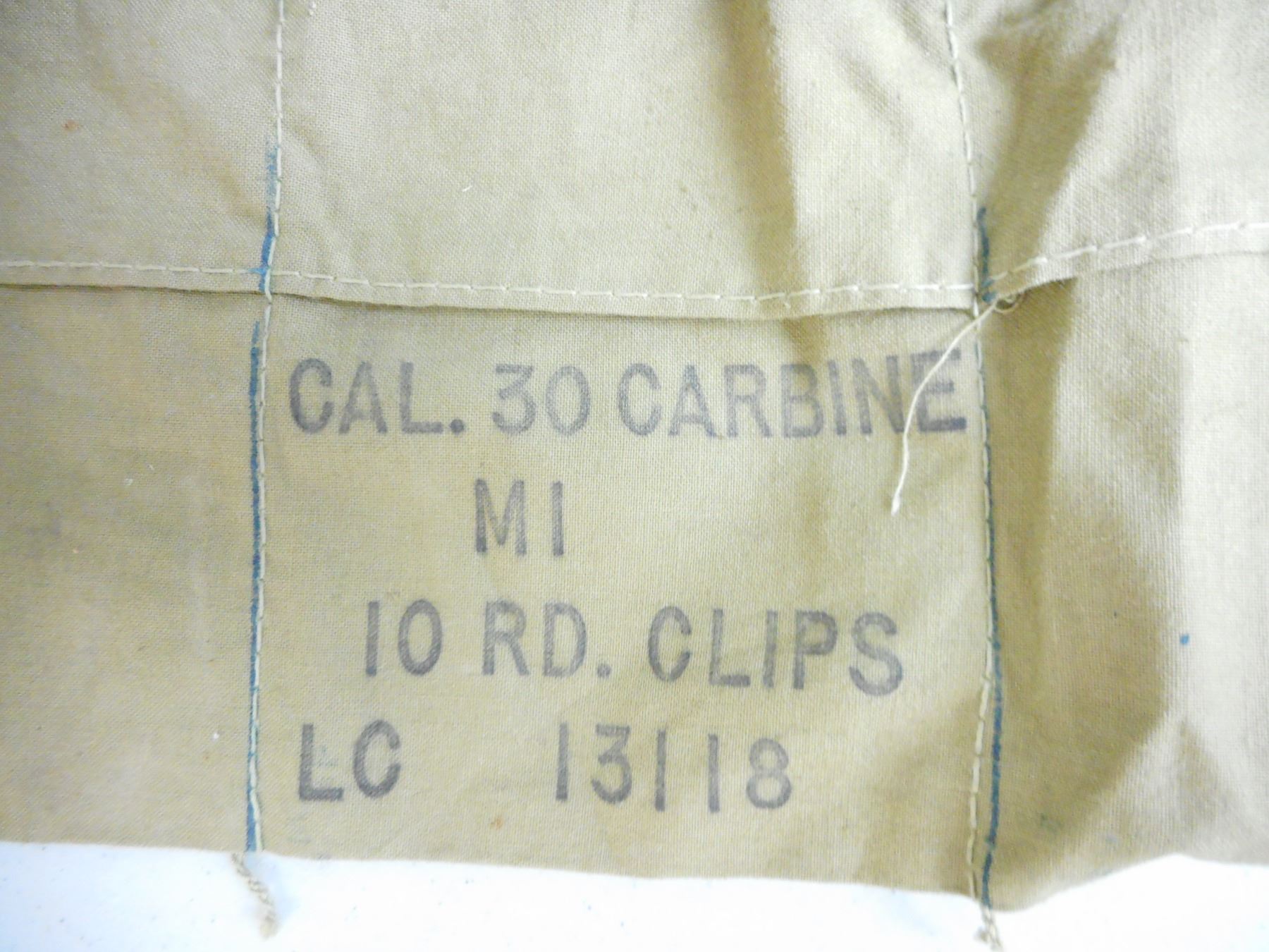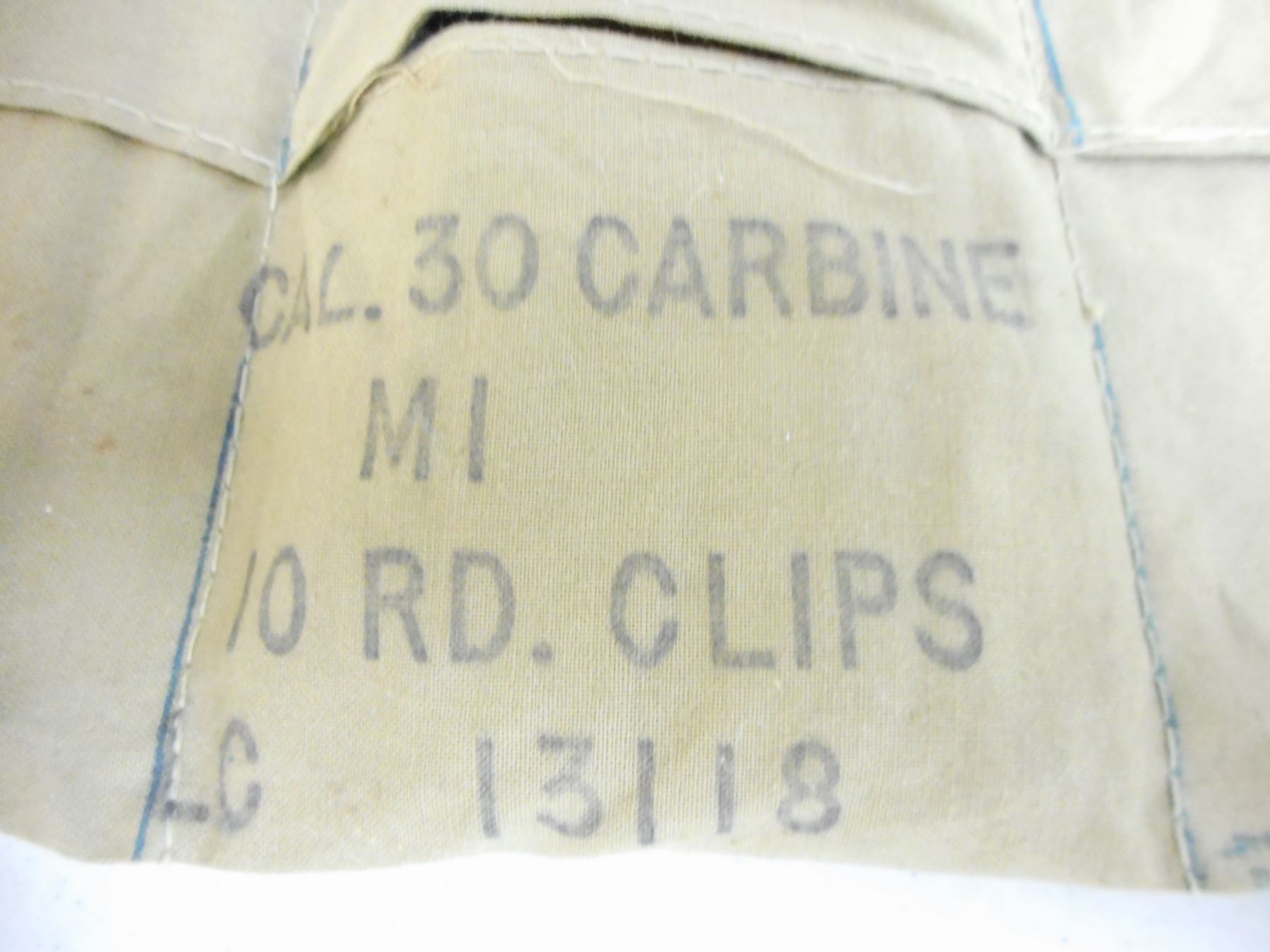 CAL. .30 CARBINE AMMO & BANDOLEER , 60 RNDS ON STRIPPER CLIPS BANDOLEER MARKED CAL. 30 CARBINE M1 10 RD. CLIPS LC 13118