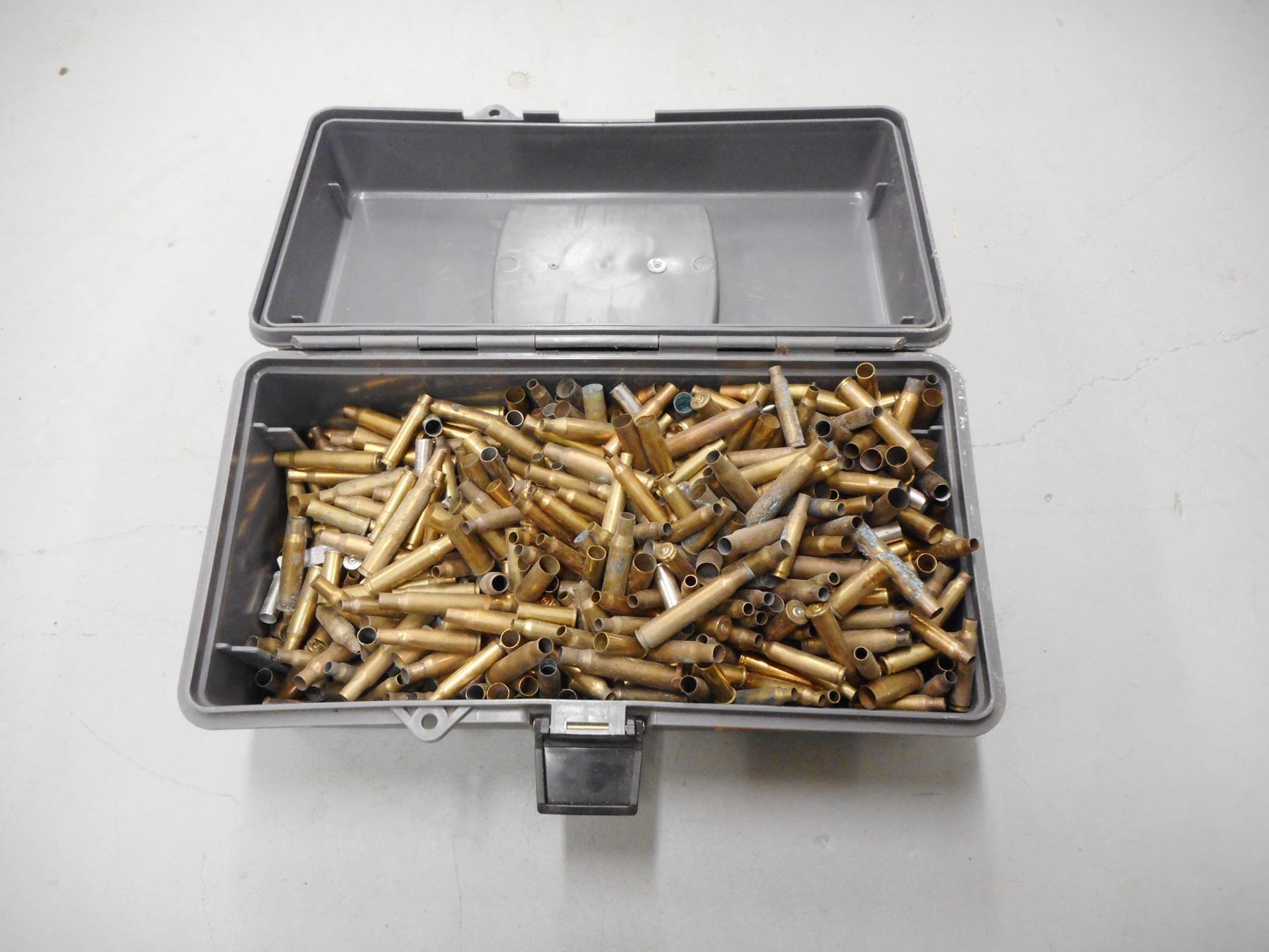 TOOL BOX OF BRASS , TOTAL WEIGHT: 15.5 LBS, BRASS INCLUDES 30-06 SPRG, 222 REM, 455 COLT, 308 WIN, AND MORE