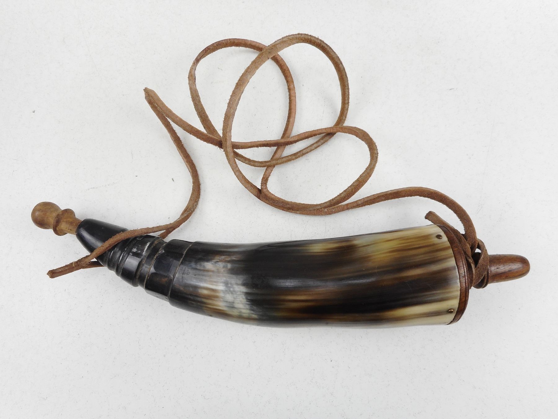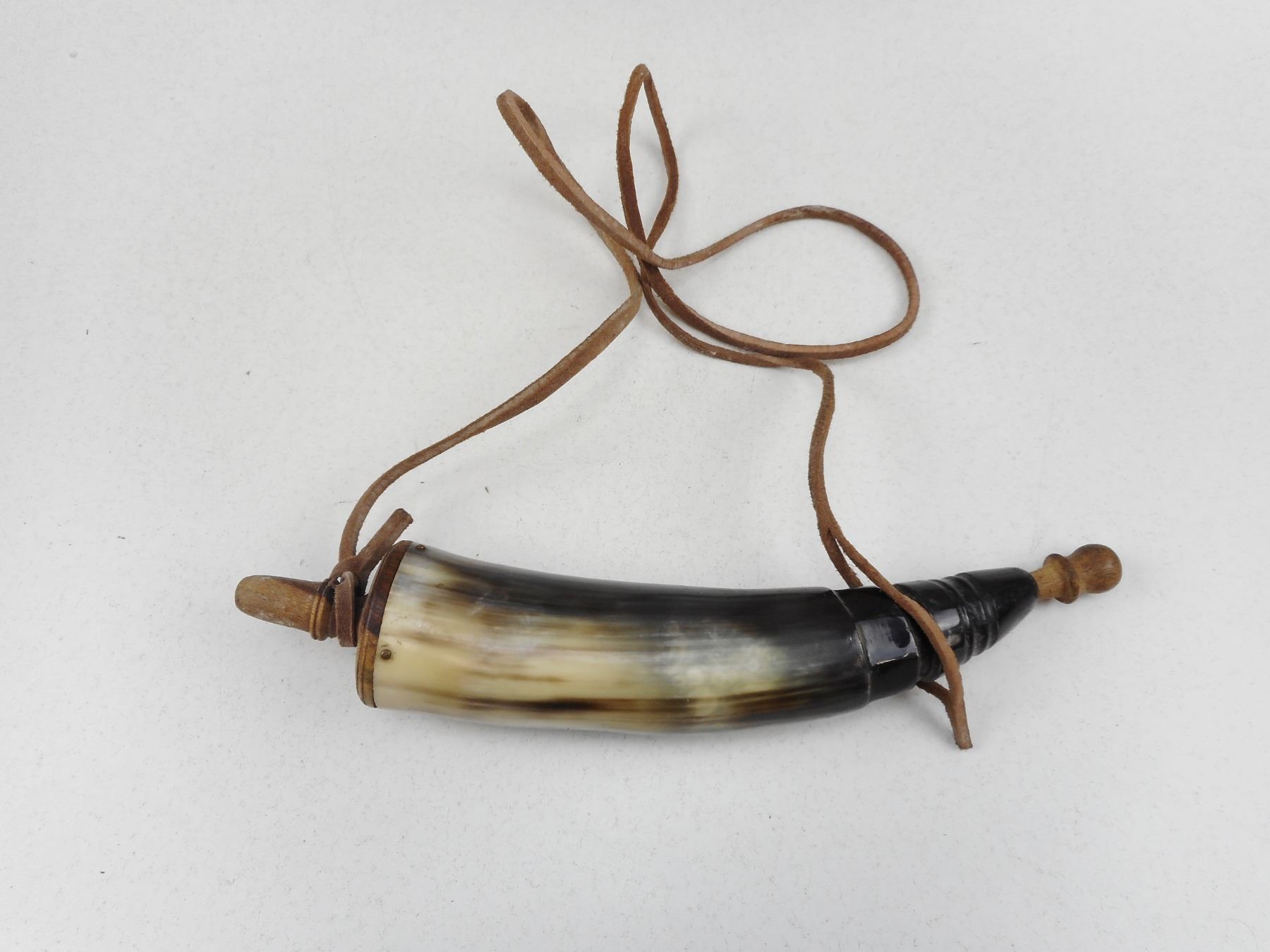 POWDER HORN , WITH STOPPER AND LEATHER STRAP