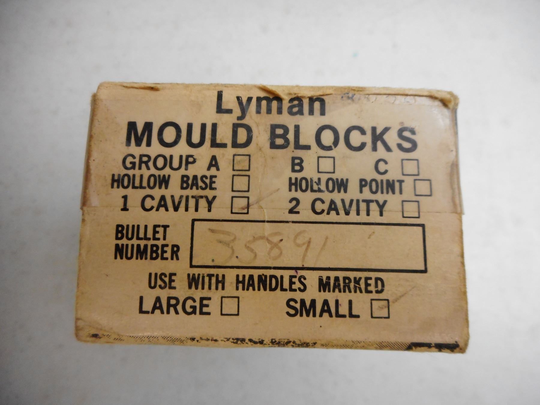 LYMAN SINGLE CAVITY BULLET MOULD , 358091AV BBWC, IN ORIGINAL BOX