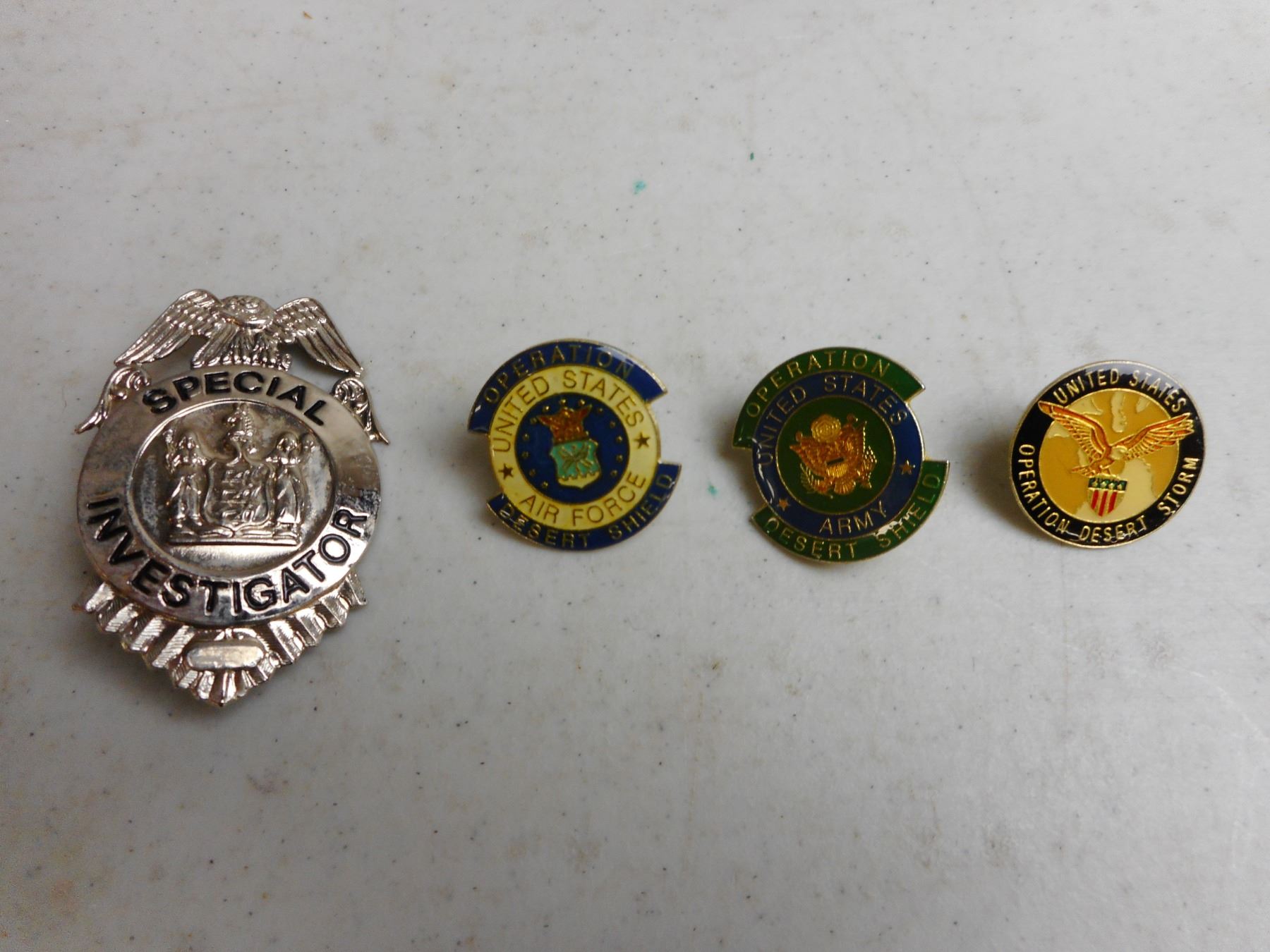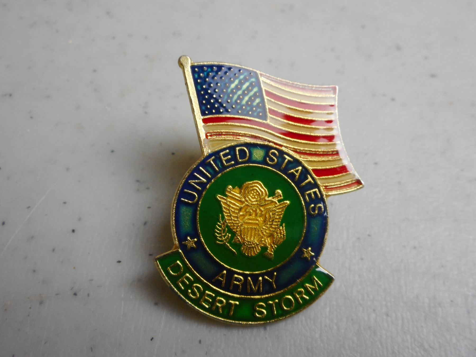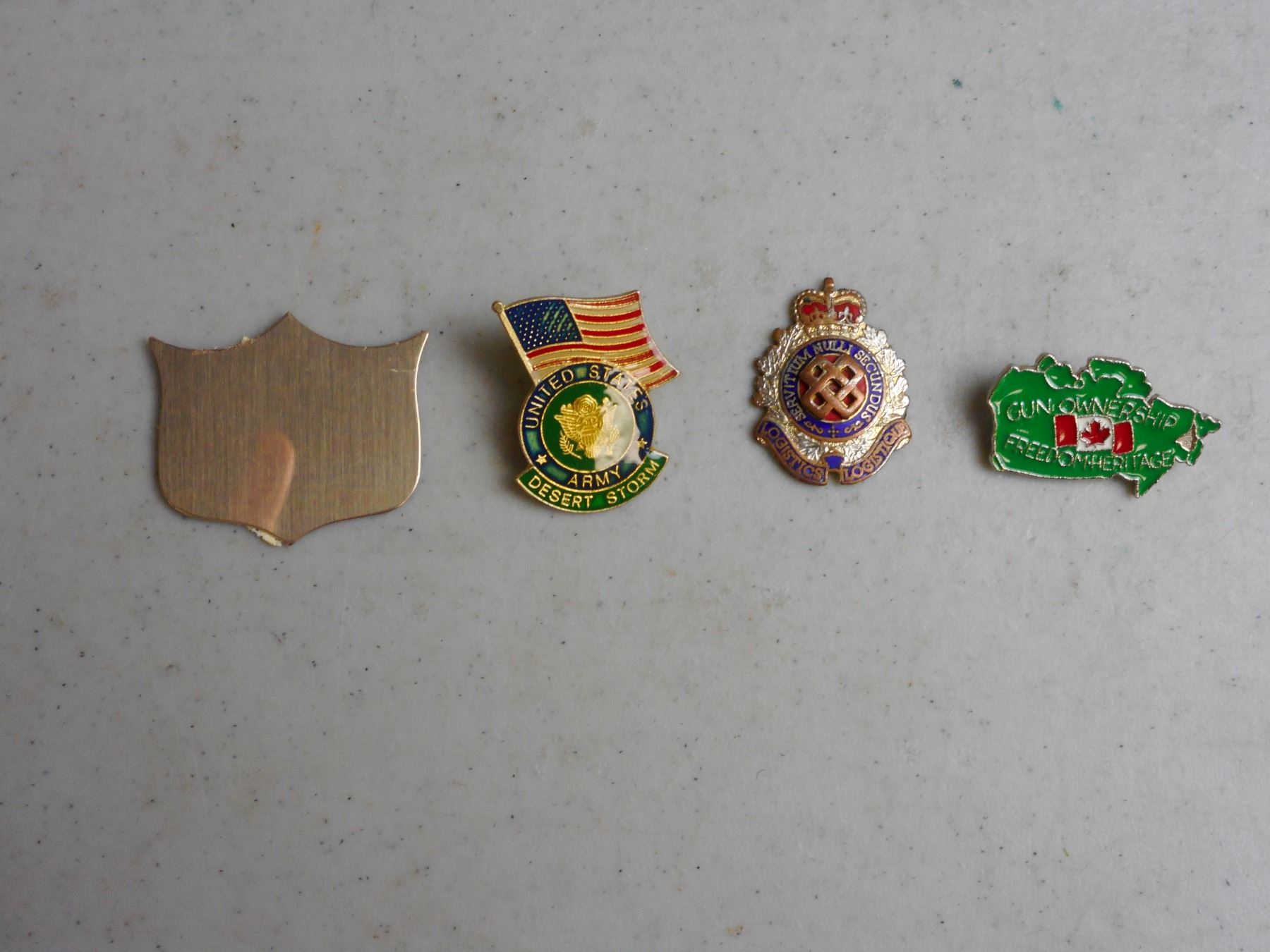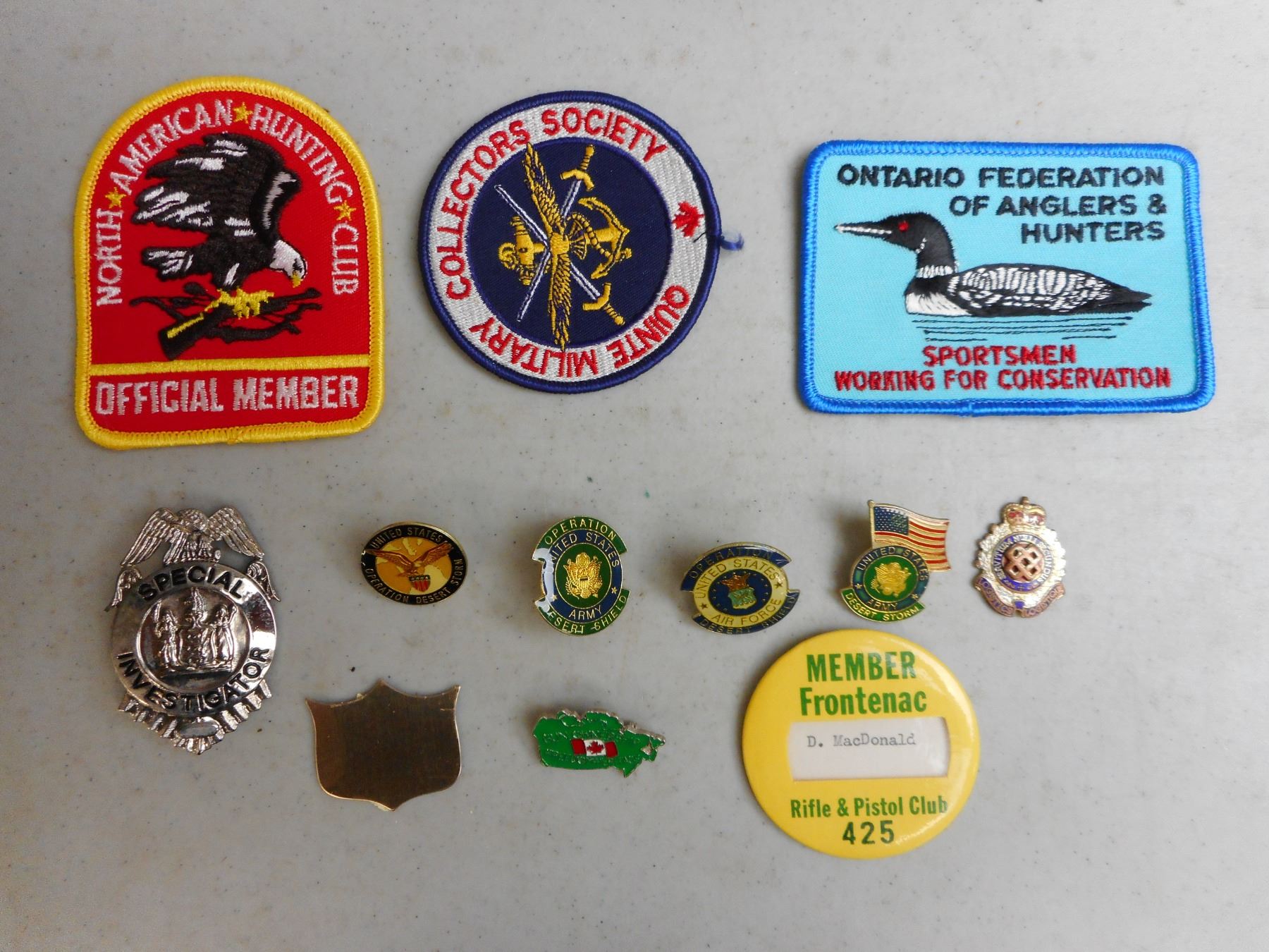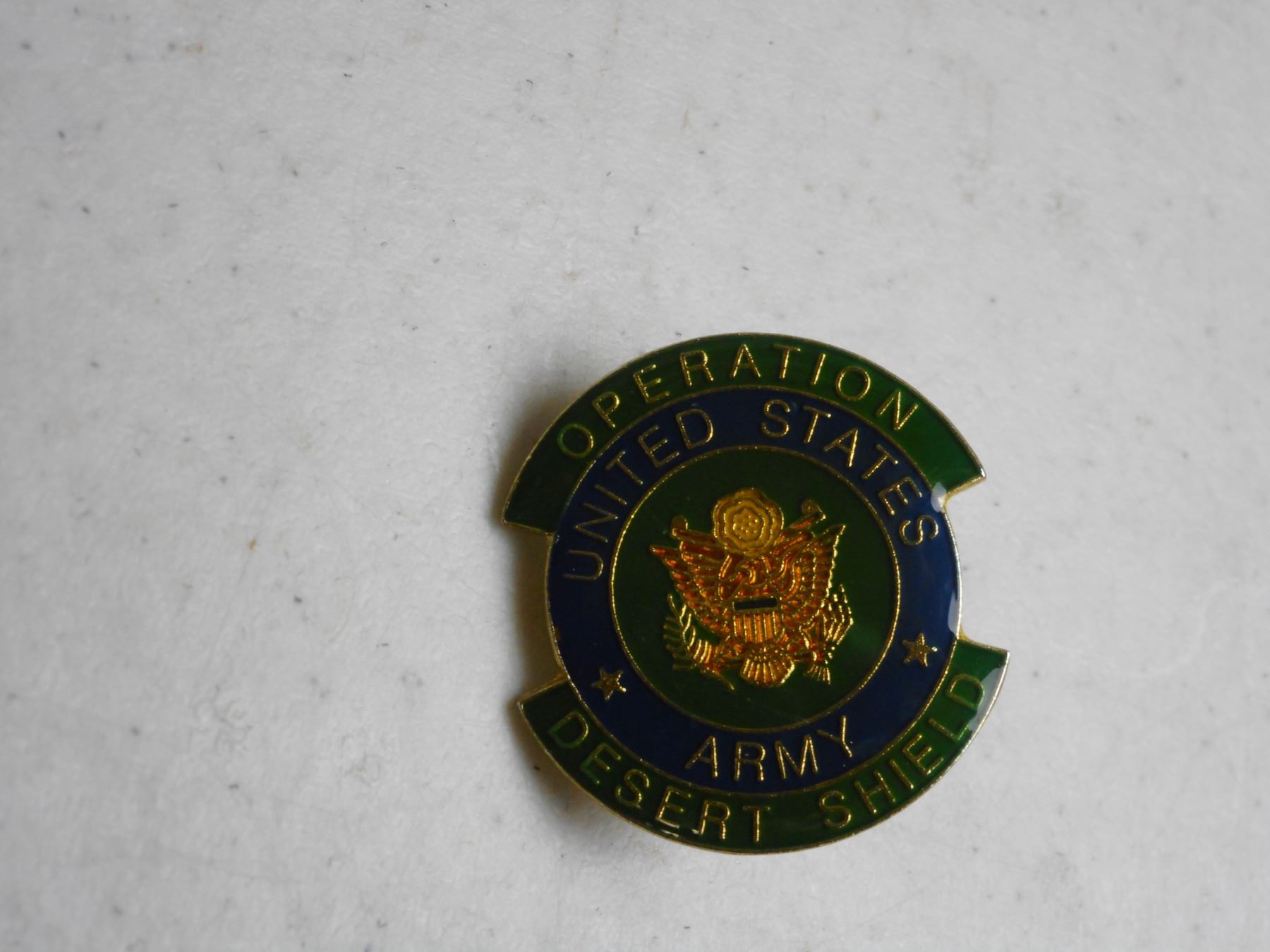 ASSORTED U.S. ARMY PINS & HUNTERS & MILTARY CLUB PATCHES , (4) U.S. ARMY PINS FOR OPERATION DESERT SHIELD & DESERT STORM, O.F.A.H. PATCH, NORTH AMERICAN HUNTING CLUB PATCH & QUINTE MILITARY COLLECTORS SOCIETY