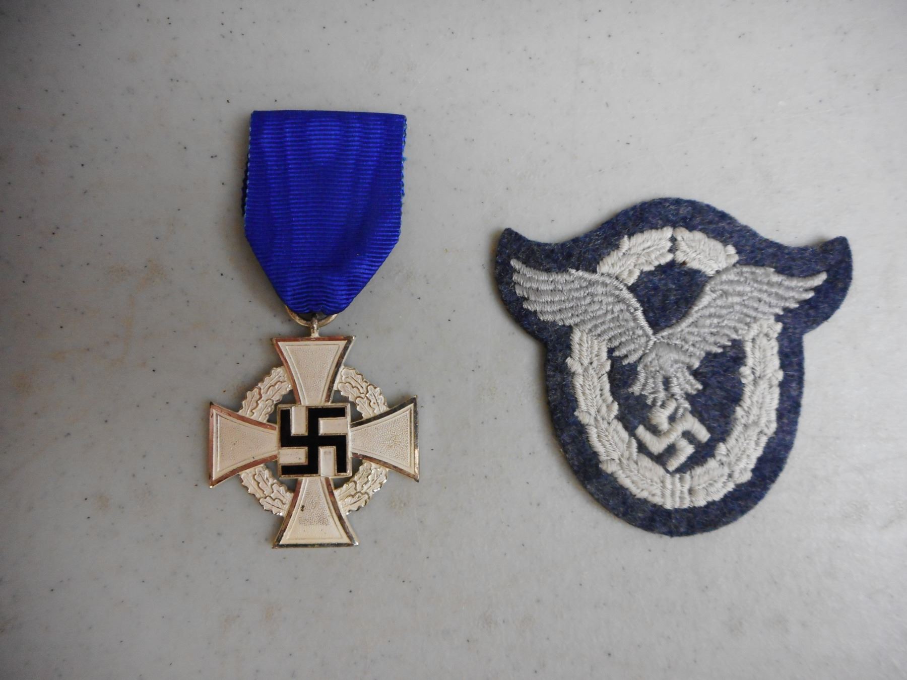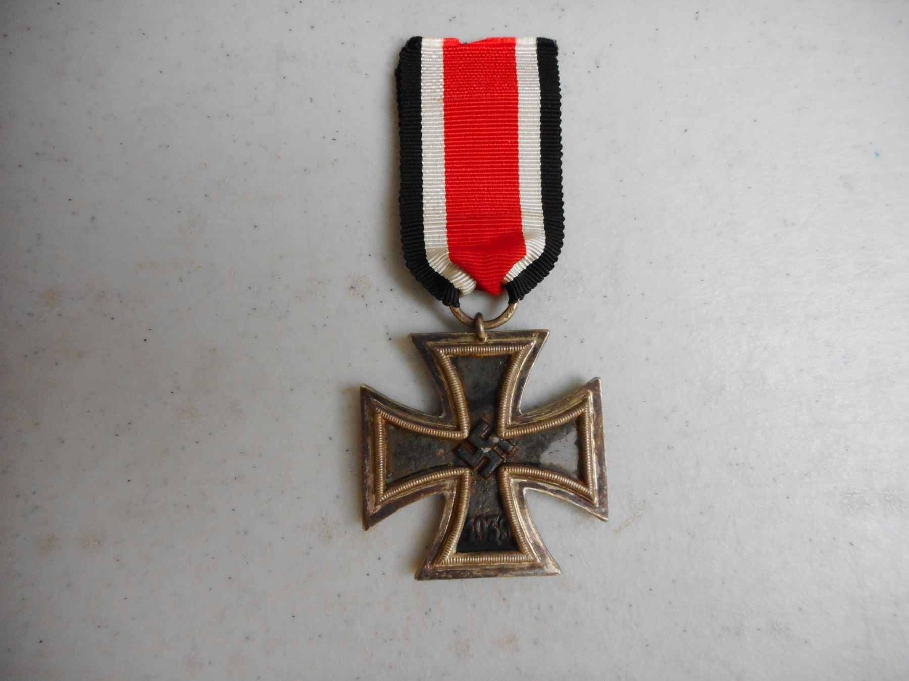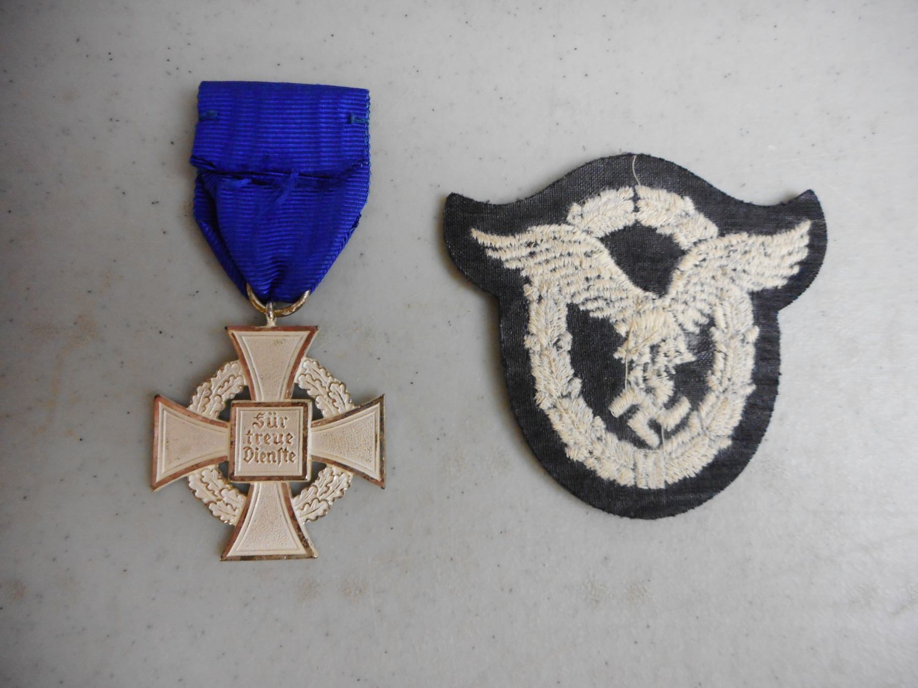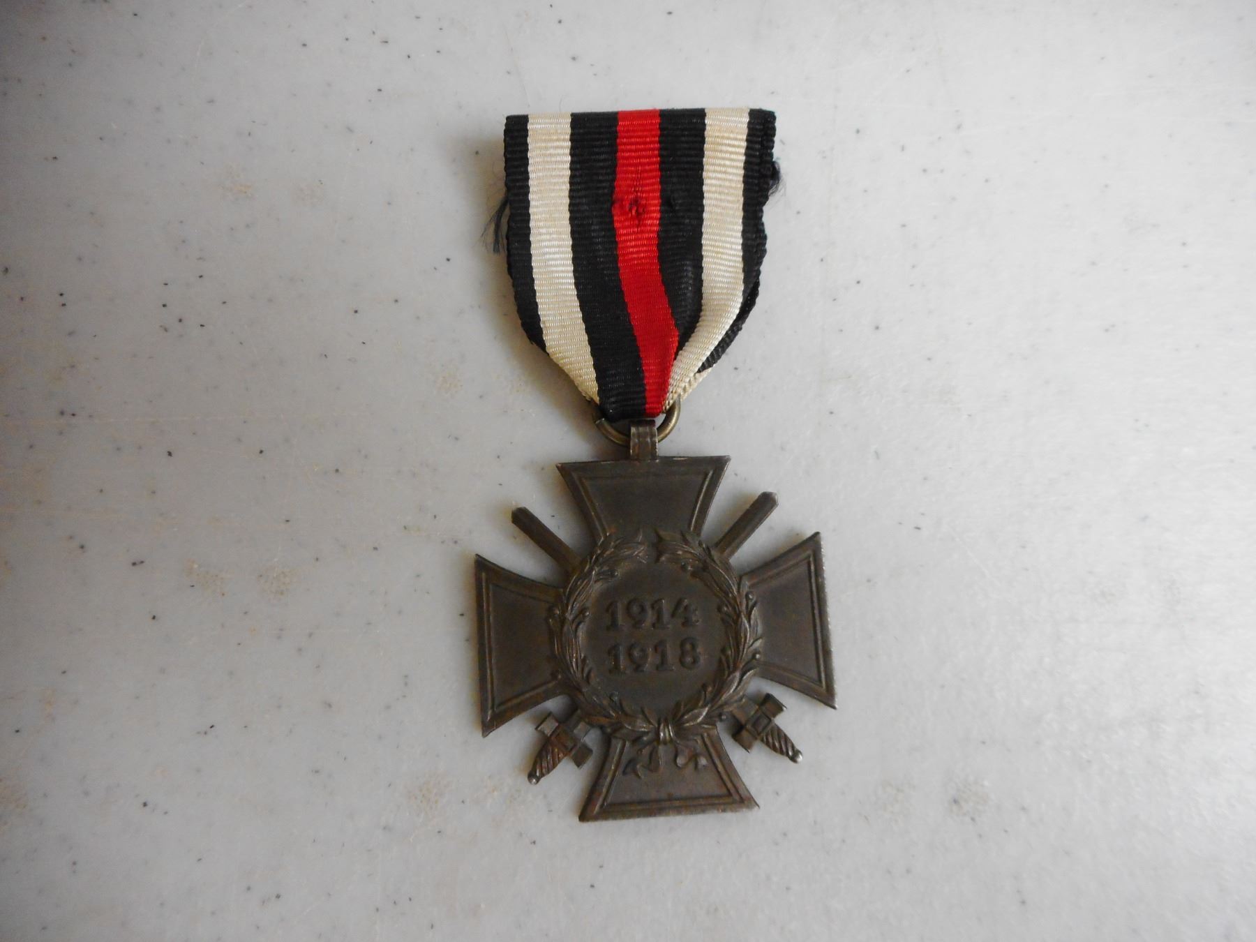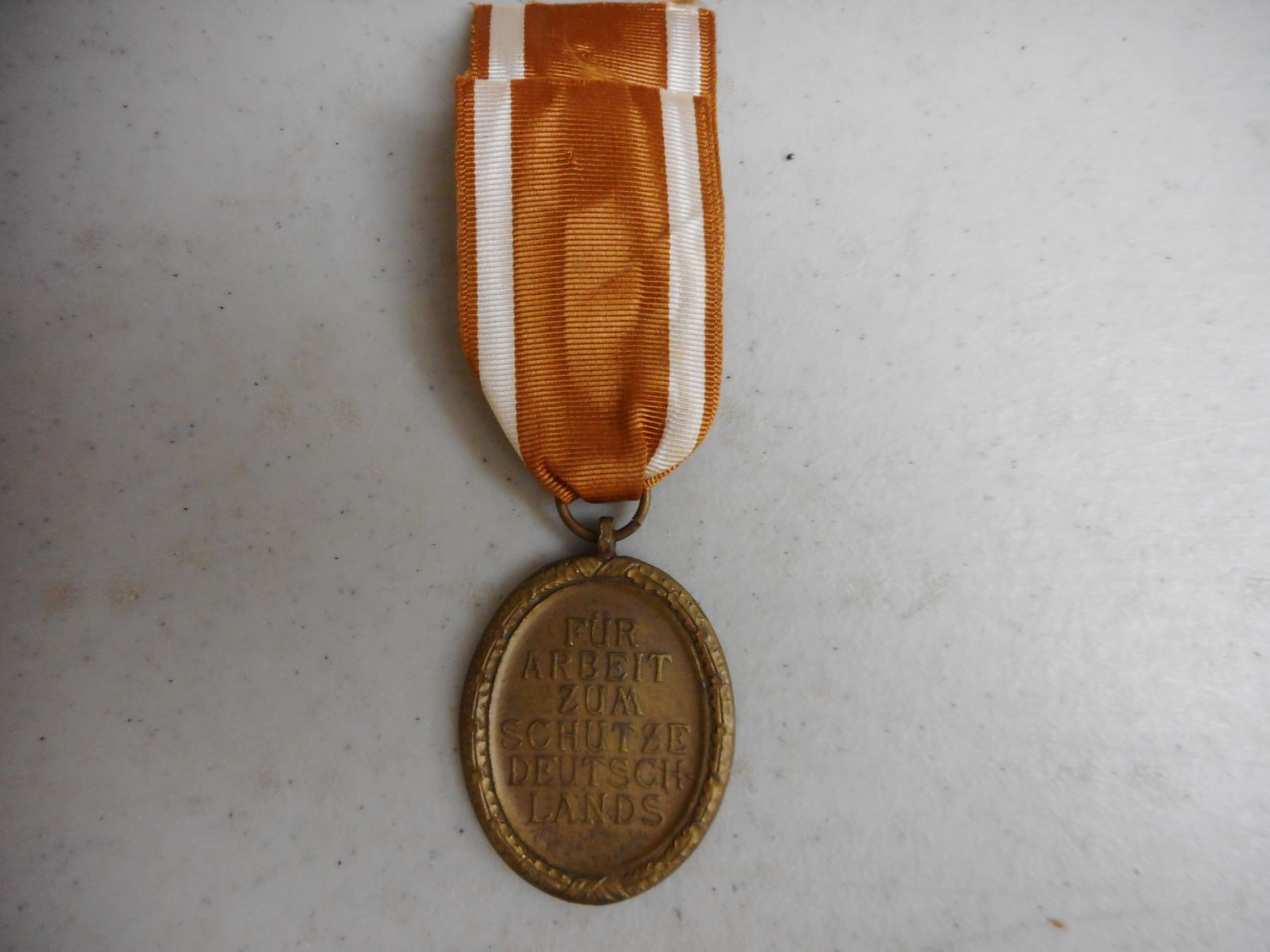 GERMAN WWI/WWII MEDALS & BADGE , INCLUDES 1939 IRON CROSS WITH RIBBON, 1914-1918 HINDENBURG CROSS COMBATENT WITH RIBBON, HONOUR OF THE GERMAN MOTHER CROSS WITH RIBBON, SERVICE MEDAL WITH RIBBON & GERMAN WEST WALL DEFENCE MEDAL, LUFTWAFFE PILOT FABRIC BADGE