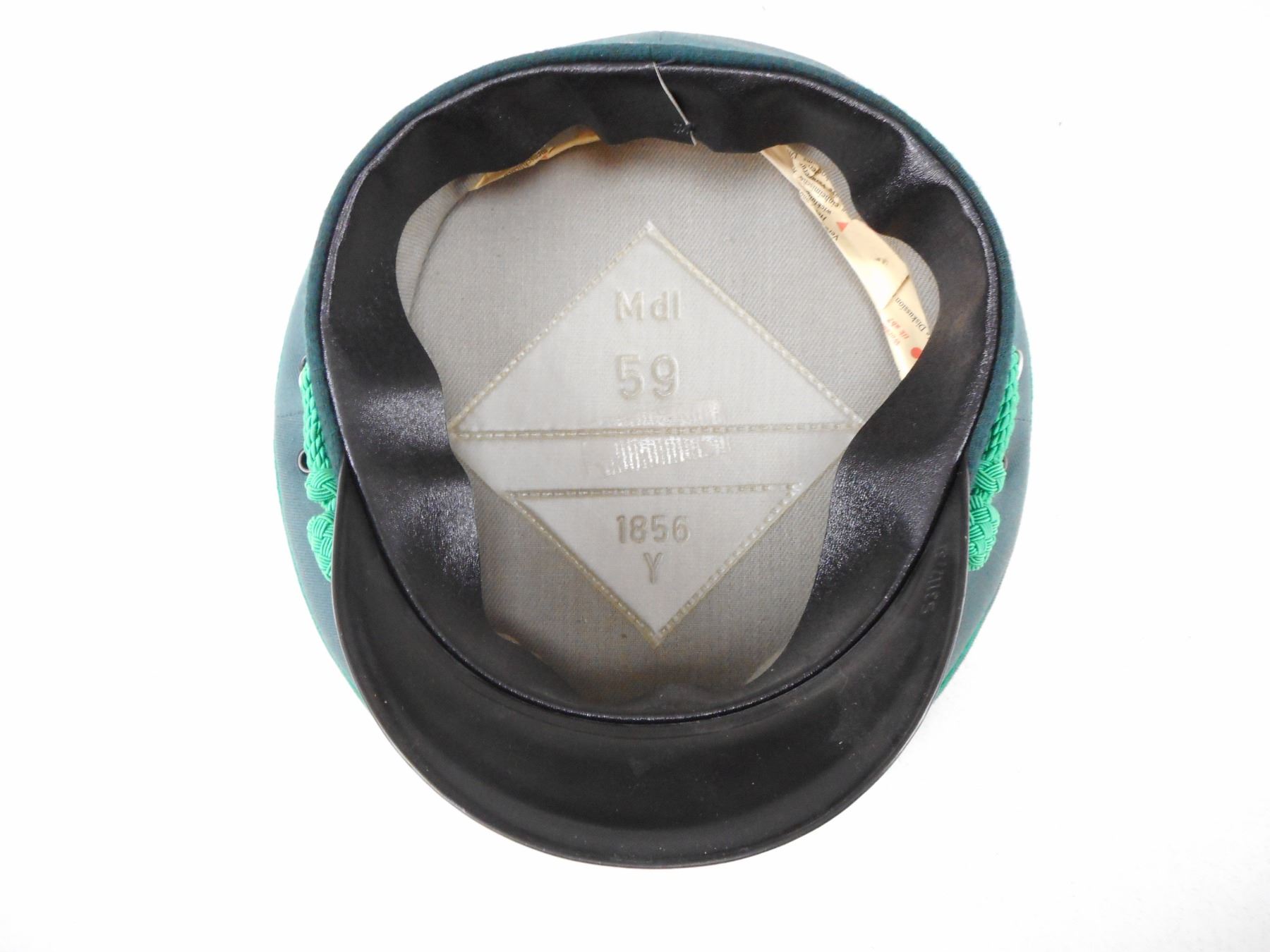 EAST GERMAN OFFICERS HAT & GREEN TIE , INSIDE MARKED MDL 59 1856 Y, GREEN TIE