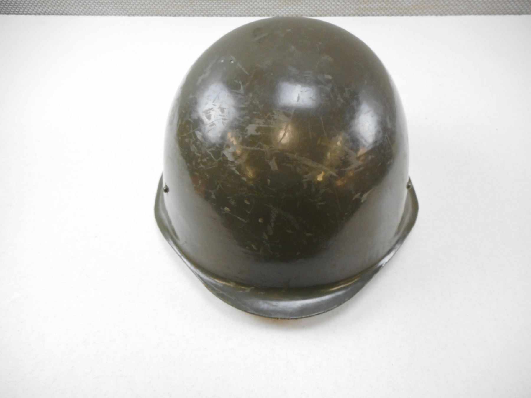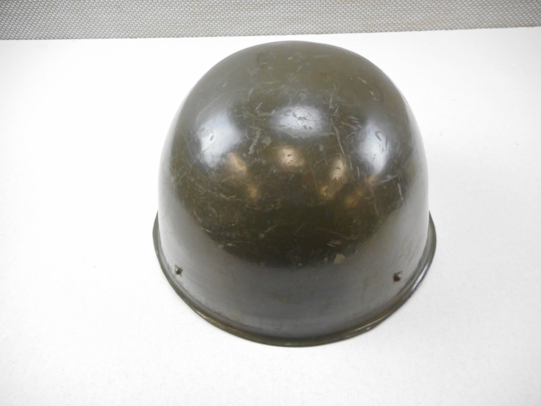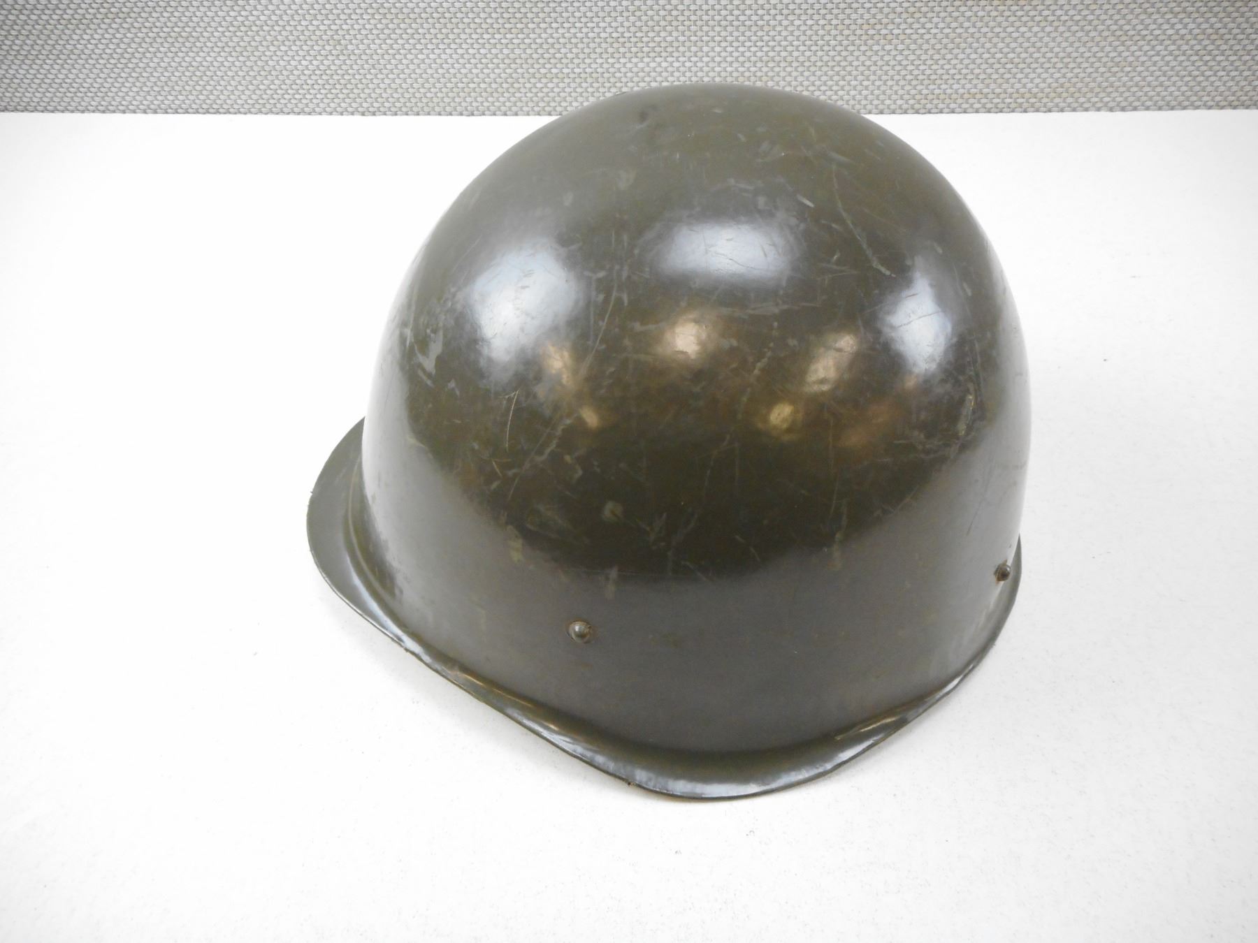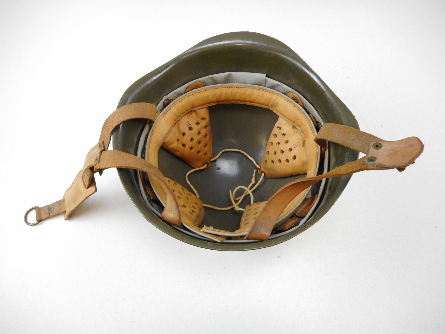 EUROPEAN MILITARY HELMET , WITH LEATHER/SYNTHETIC HEADBAND & CHIN STRAP, STAMPED 38