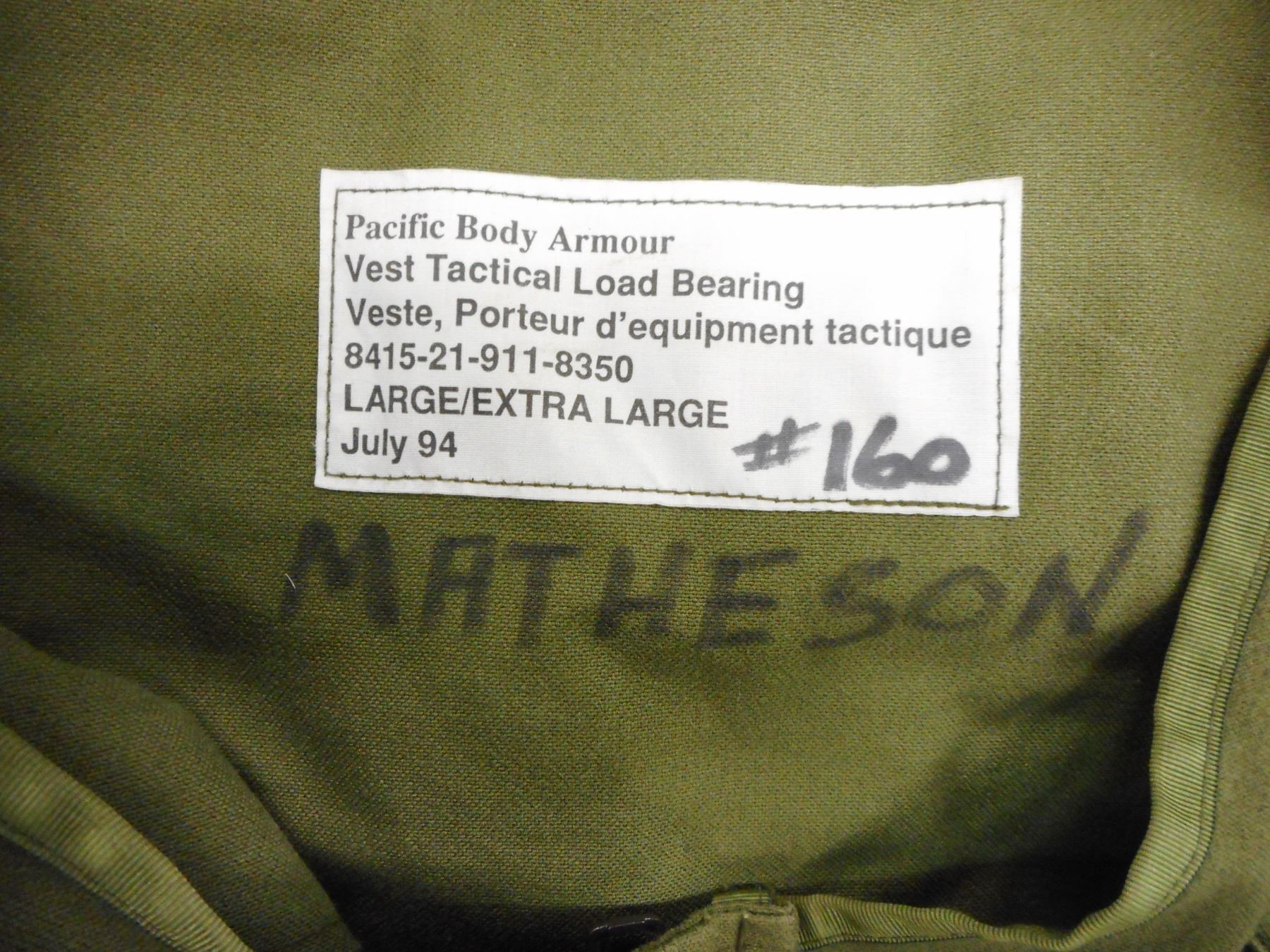 TACTICAL LOAD BEARING VEST & CLEANING KIT , PACIFIC BODY ARMOUR LARGE/EXTRA LARGE DATED JULY 94, (1) CLEANING KIT WITH PULL THROUGH & BRUSH