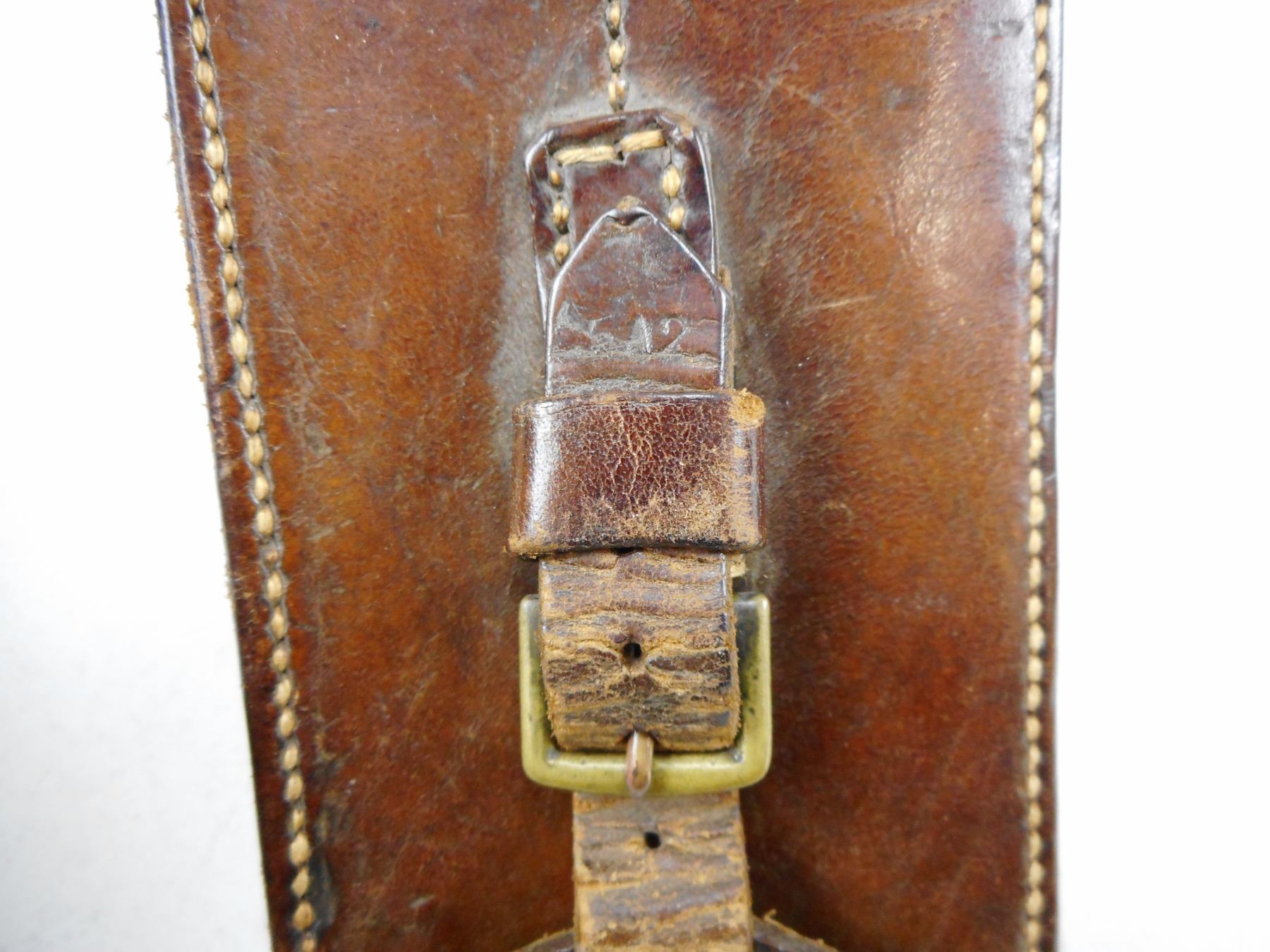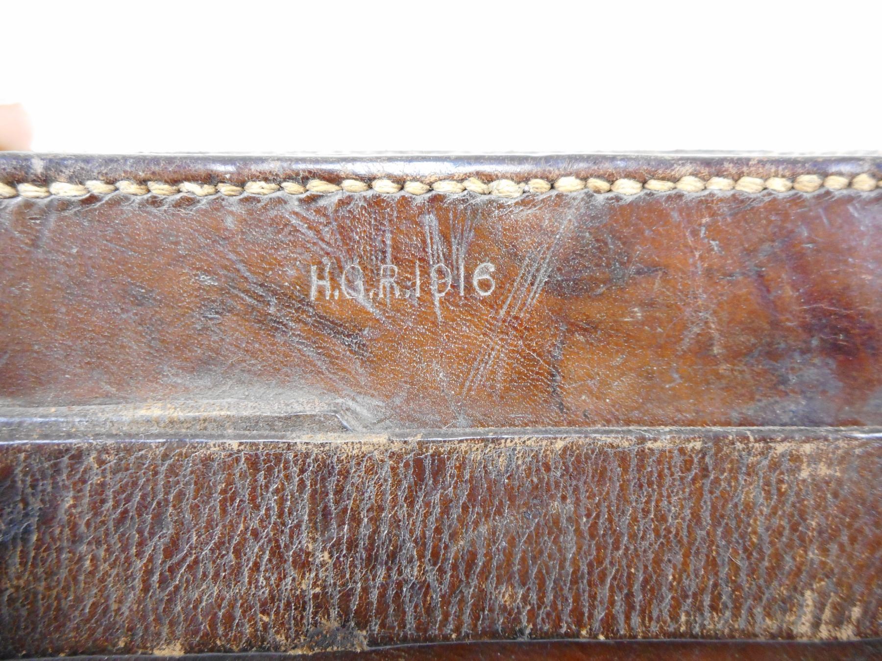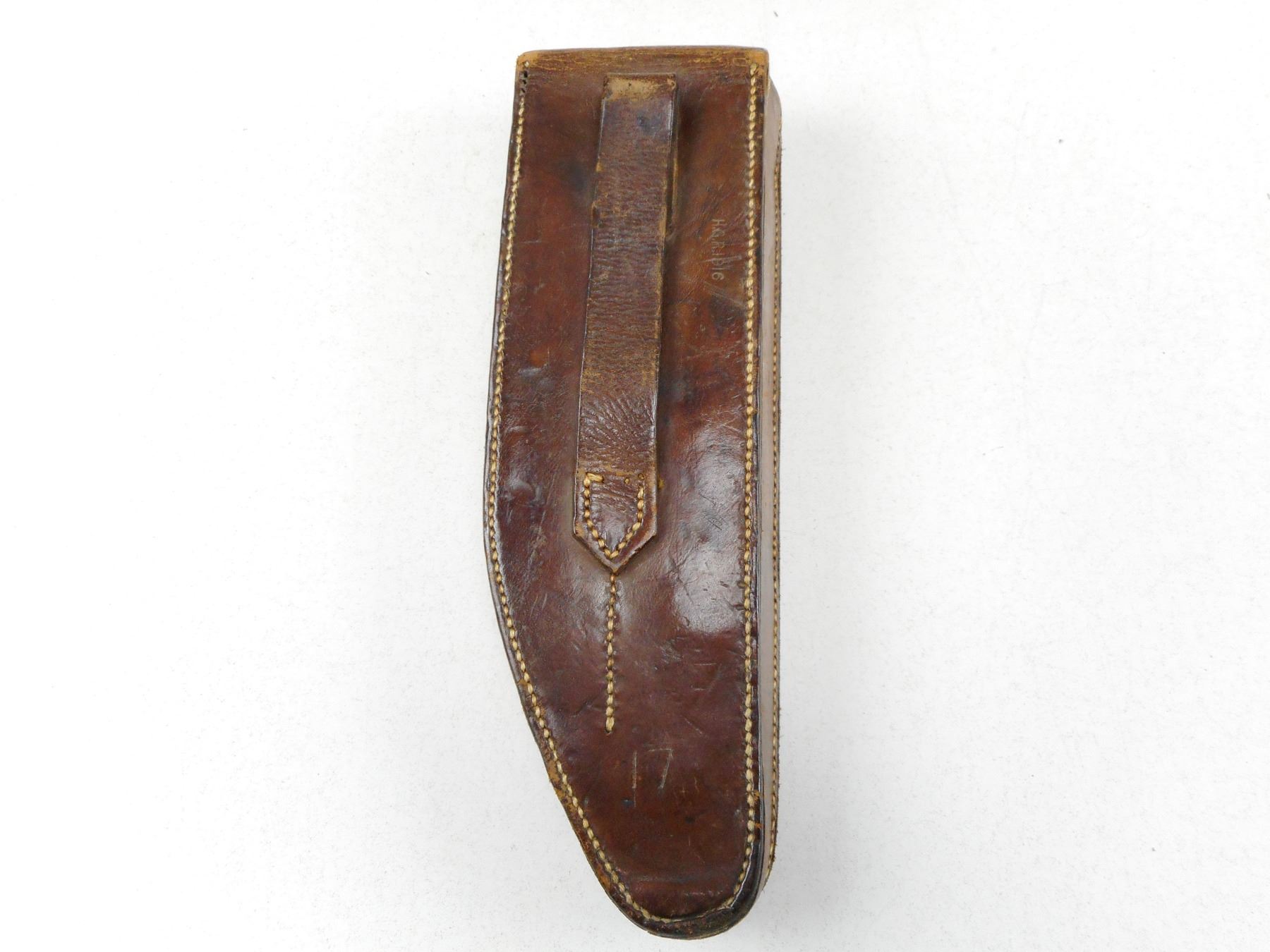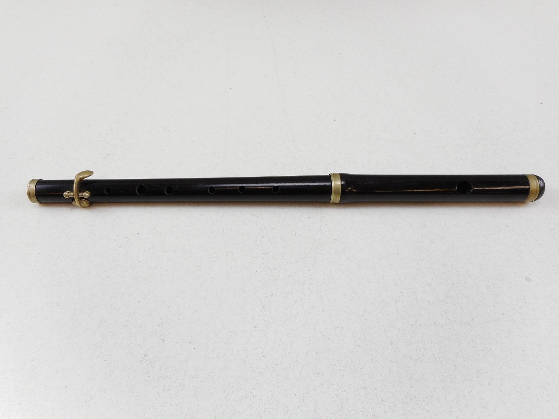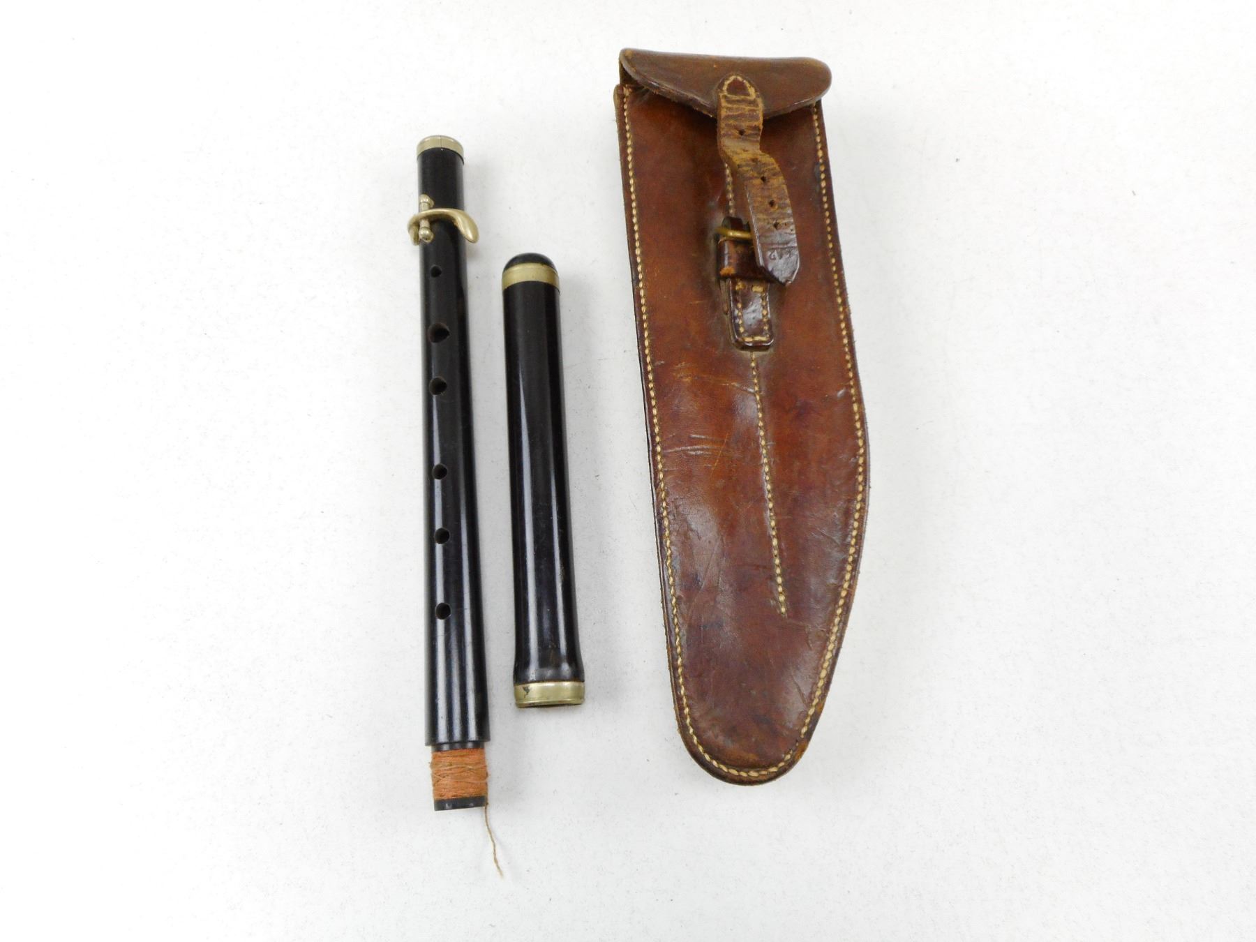 WWI BRITISH FIFE WITH LEATHER CASE , BLACK 2-PIECE FIFE, LEATHER FIFE CASE STAMPED H.G.R. 1916