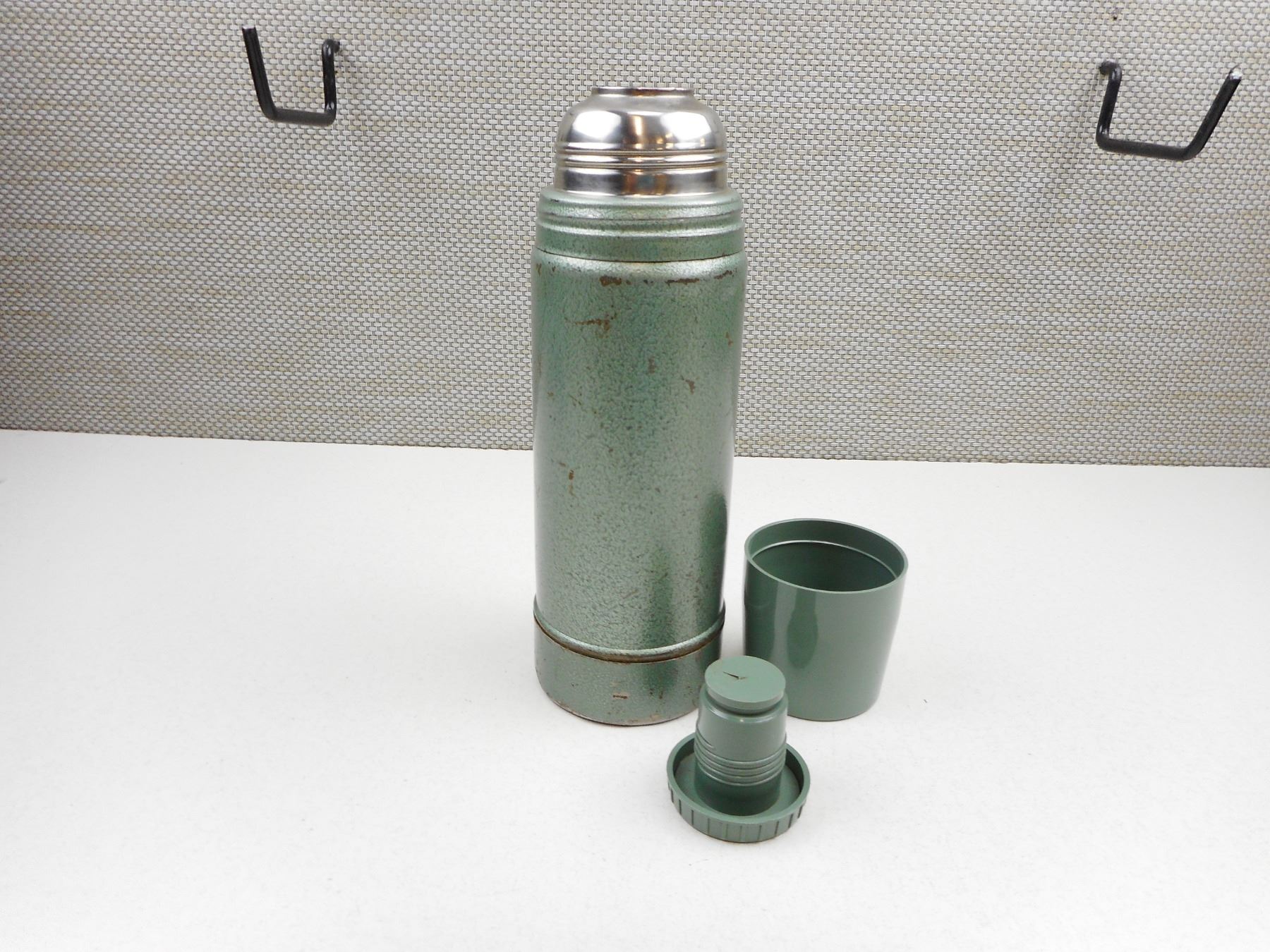 CANADIAN MILITARY THERMOS , STAMPED STANLEY VACUUM BOTTLE, WITH GREEN INSULATED CASE
