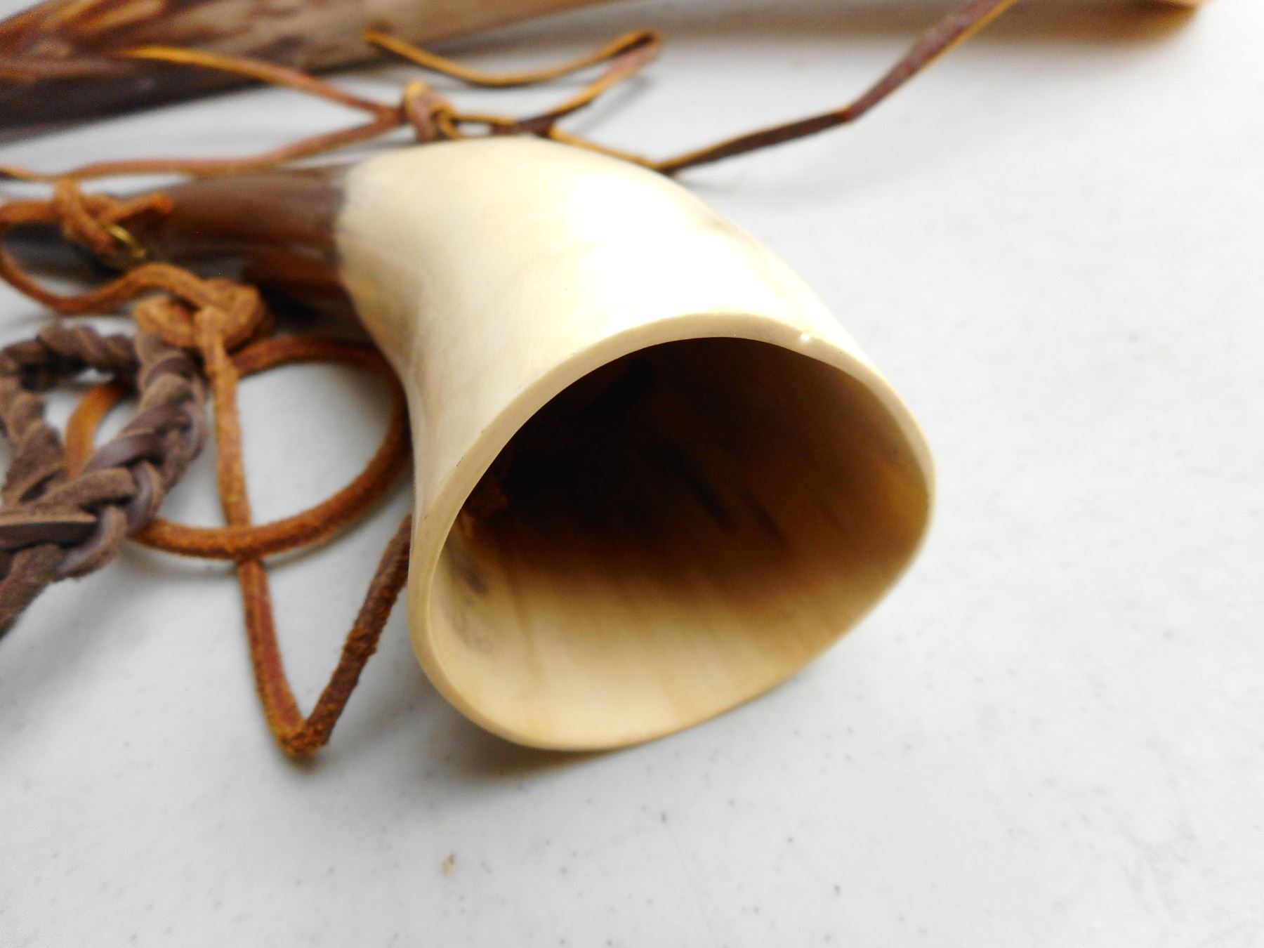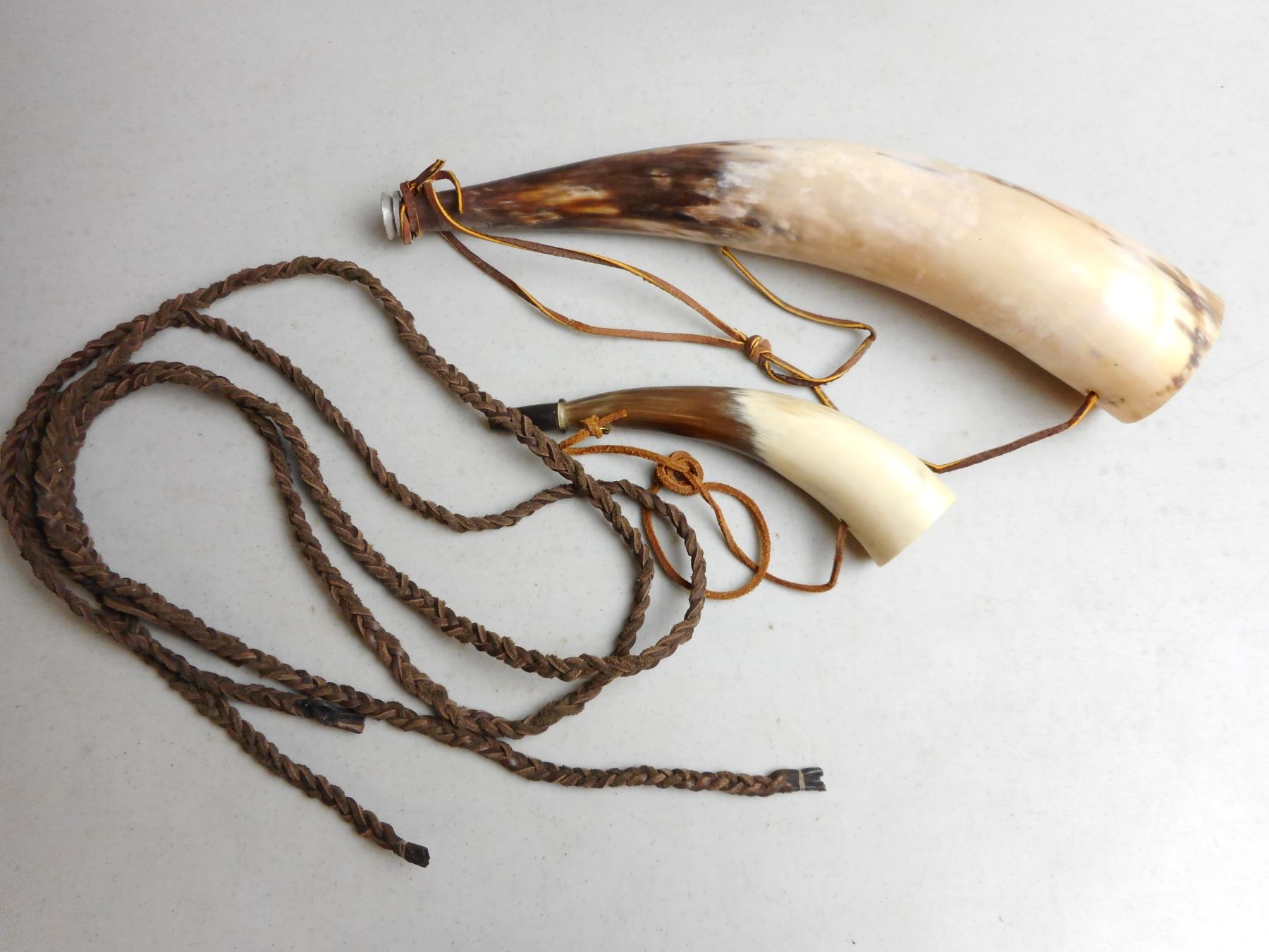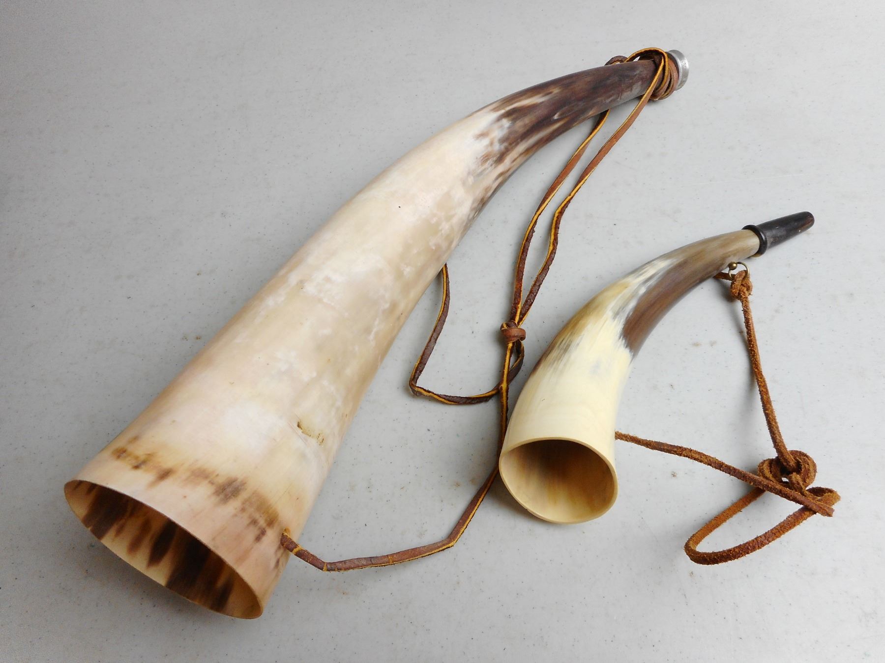 HORN BUGLES , WITH LEATHERS, LOT OF 2