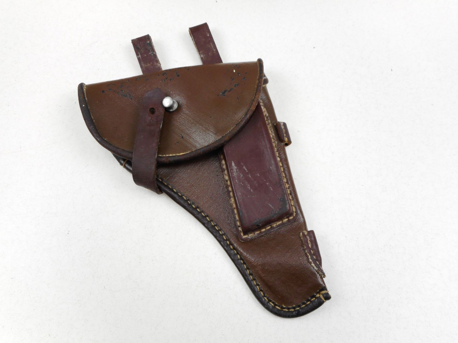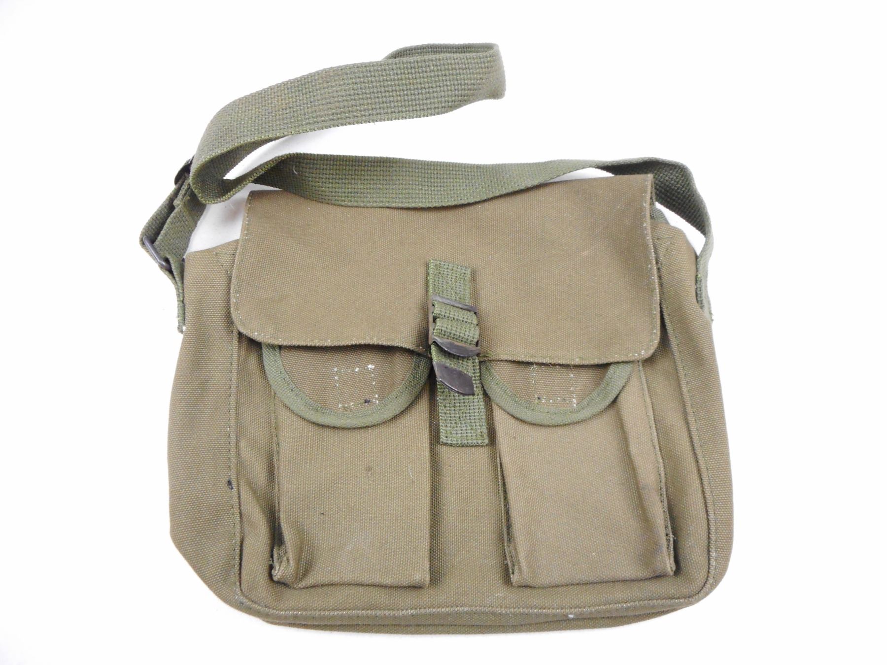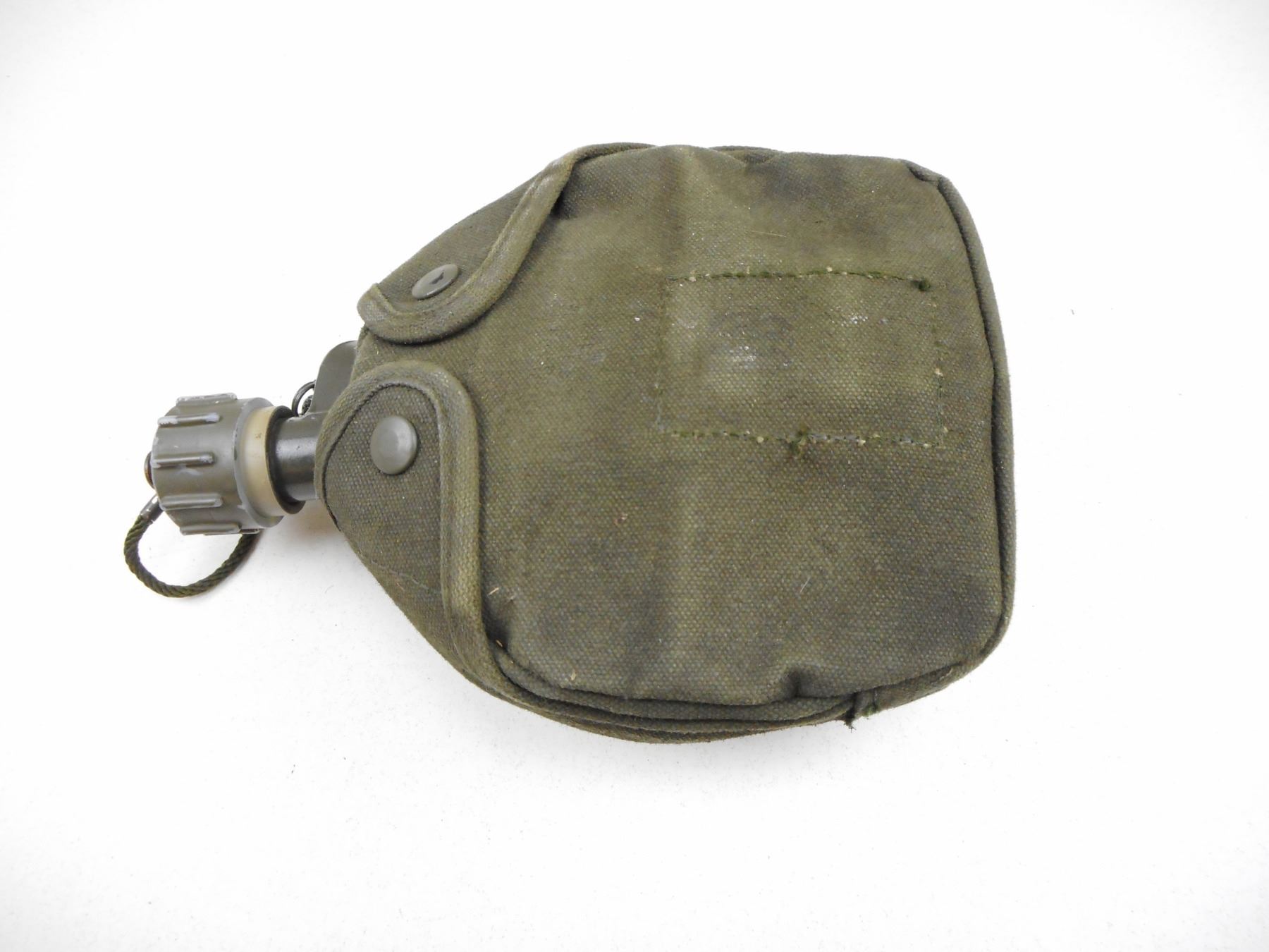 POUCHES, HOLSTER, & CANTEEN , (2) OLIVE GREEN POUCHES: (1) NEW IN BAG, (1) BROWN LEATHER HOLSTER, (1) METAL CANTEEN WITH GREEN CANVAS SLEEVE, LOT OF 4