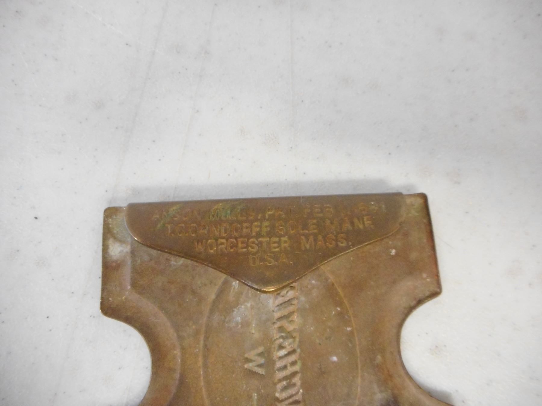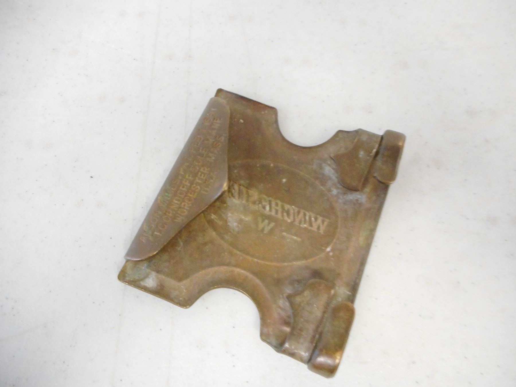 WINCHESTER BELT BUCKLE , BRASS STAMPED ANSON MILLS, PAT FEB 1 1881 T.C.ORNDOFFF SOLE MANF. WORCESTER MASS. U.S.A.