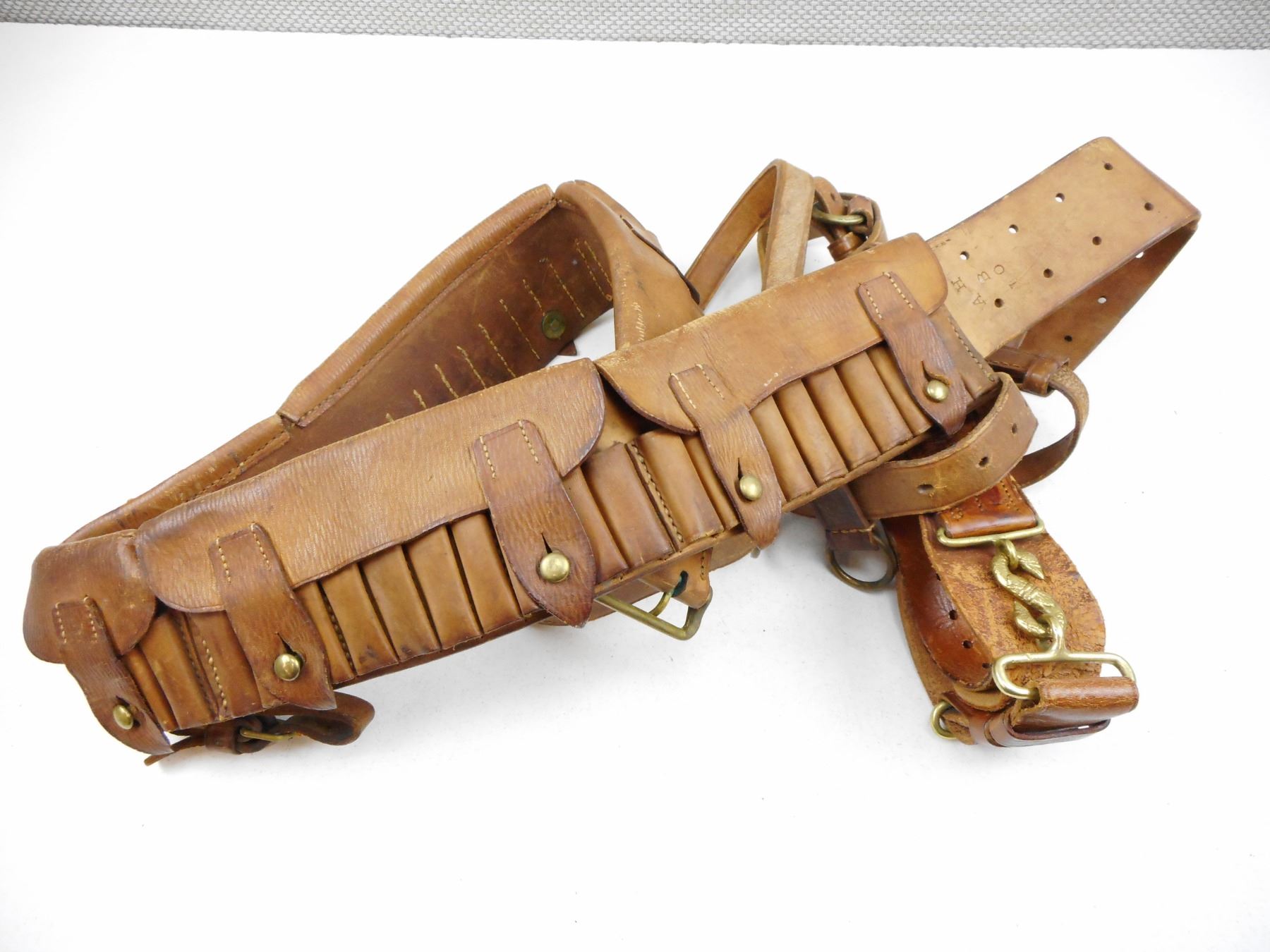 ASSORTEDLEATHER BELTS , (1) AMMO BELT 40", (1) 34.5" BELT WITH DOUBLE HEADED SNAKE BUCKLE, (1) 32", LOT OF 3