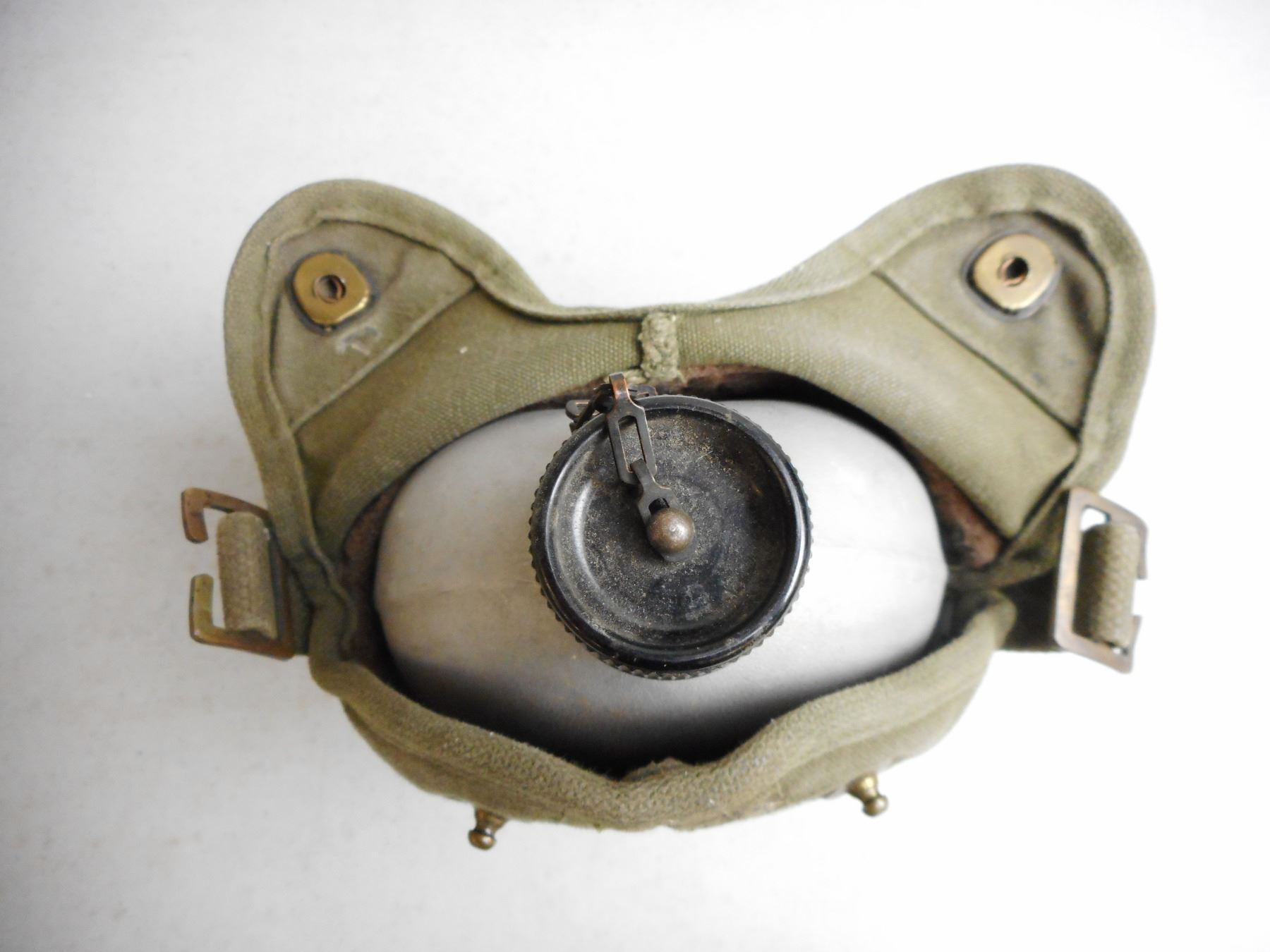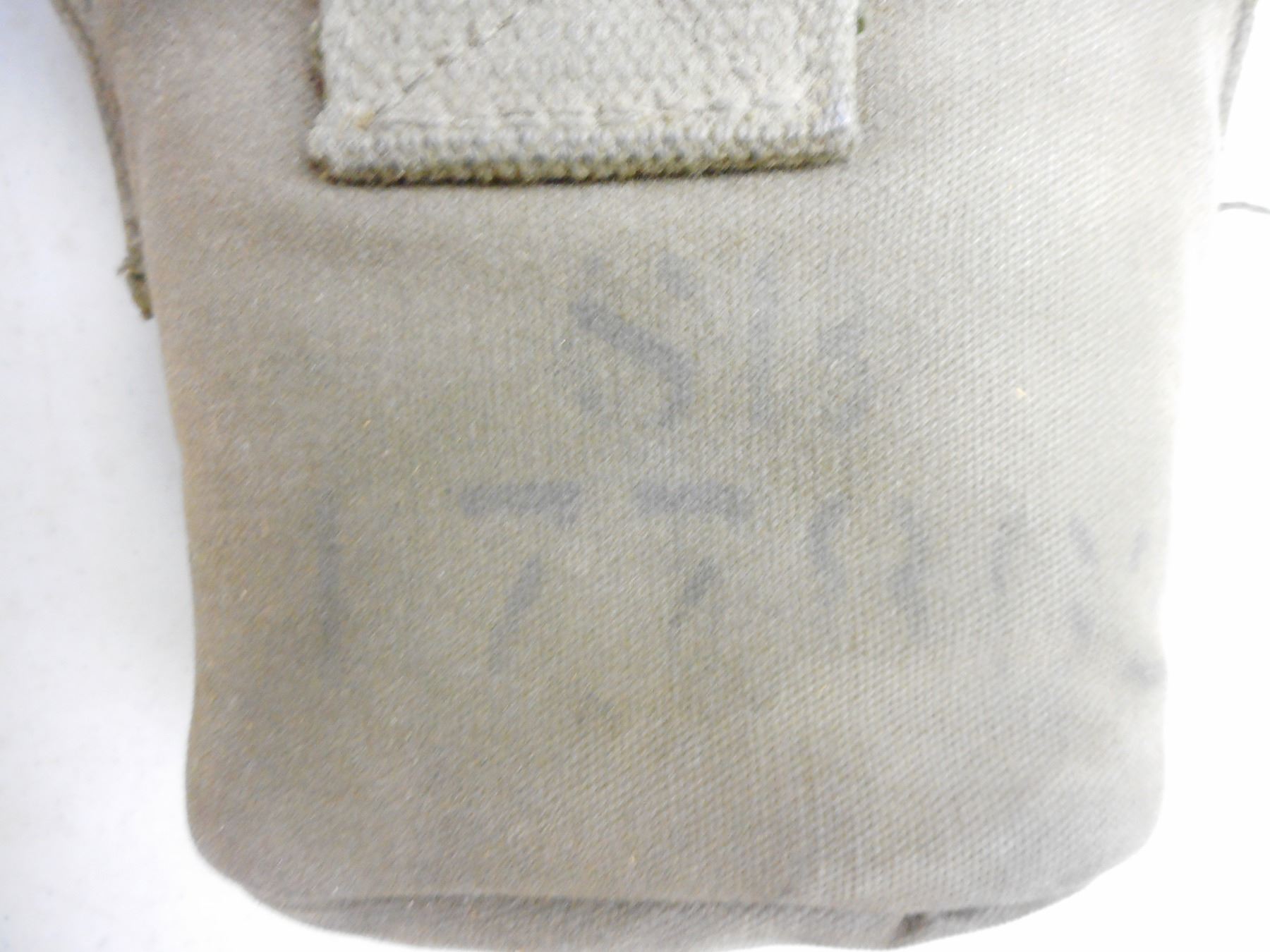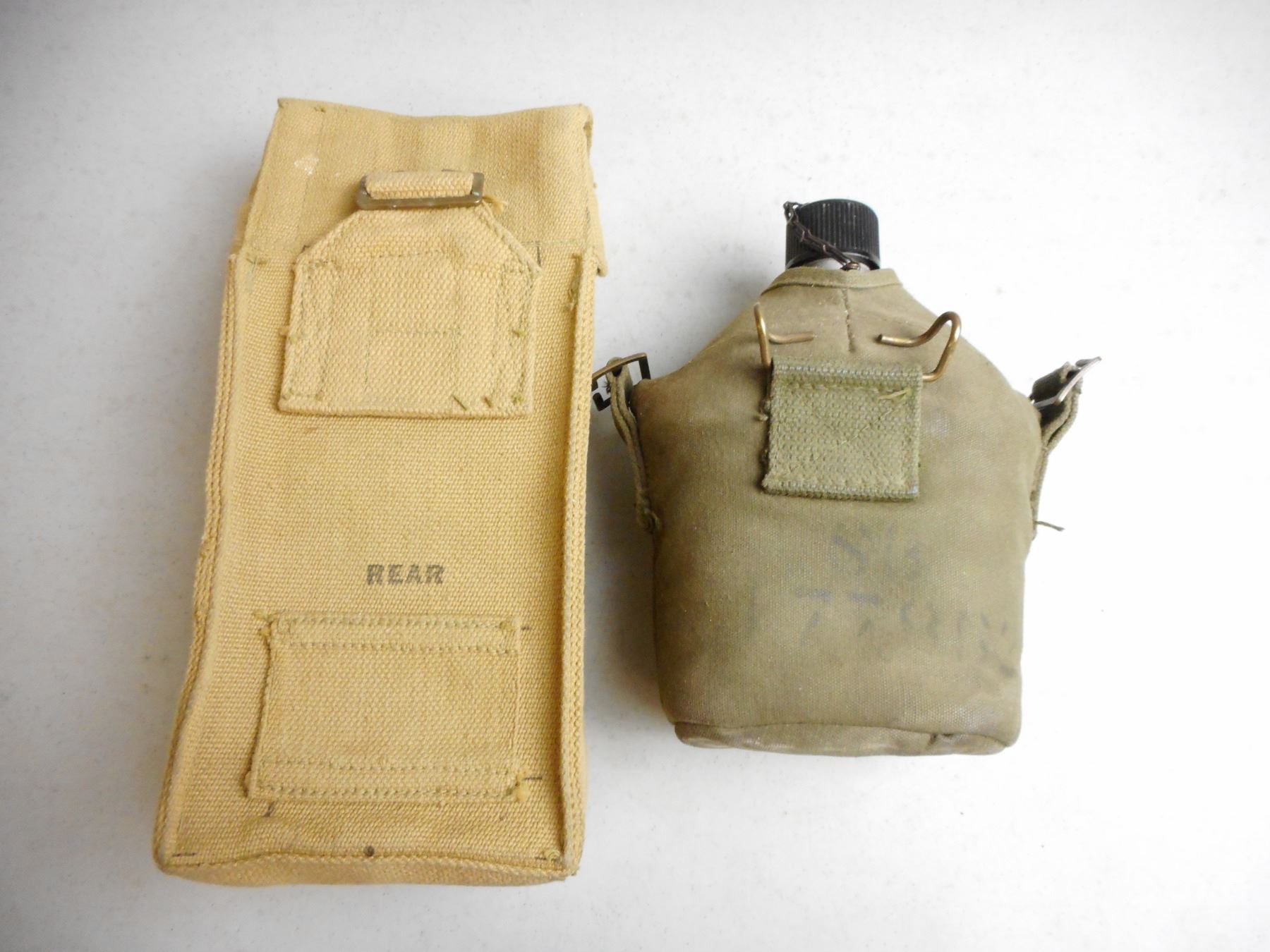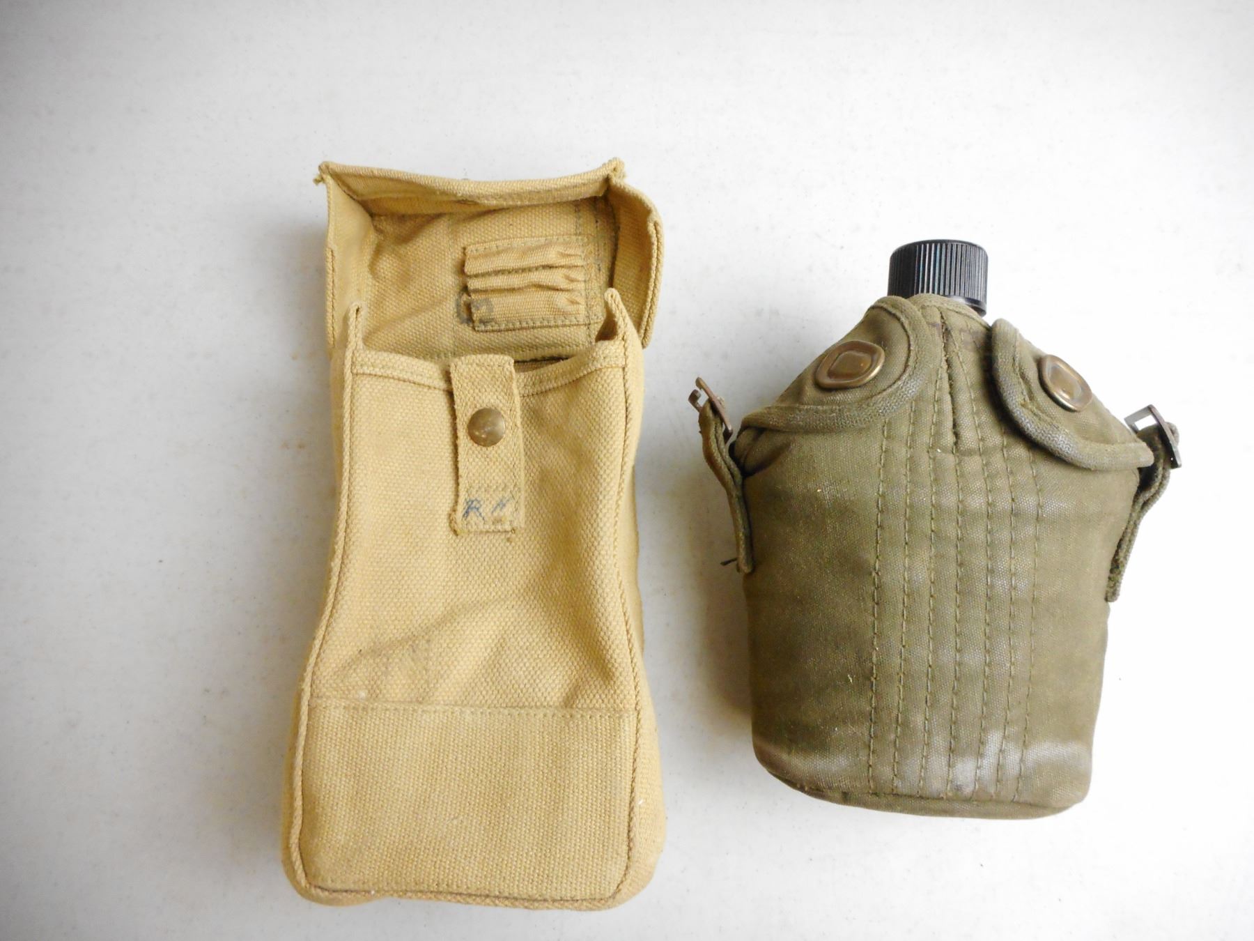 CANADIAN WWII POUCH & CANTEEN , POUCH IS CANADIAN BROAD ARROW MARKED Z.L. & T LTD. 1942, (1) METAL CANTEEN WITH COVER, LOT OF 2