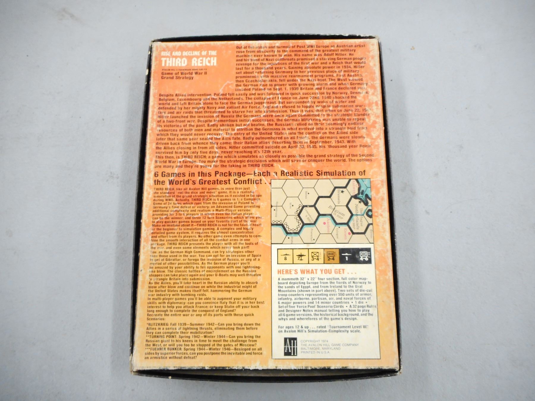AVALON HILL GAMES: RISE AND DECLINE OF THE THIRD REICH , COMPLETE & UNPUNCHED WITH INSTRUCTIONS IN BOX