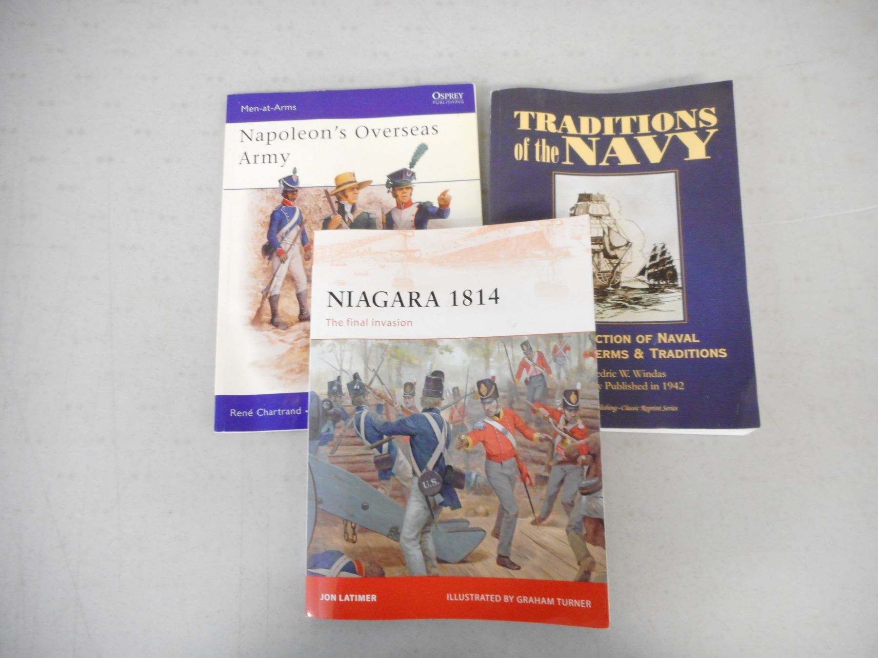 ASSORTED BOOKS ON WARS & BATTLES OF THE 1700-1800'S , (1) LIKE HUNGRY WOLVES: CULLODEN MOOR 16 APRIL 1746, (1) NIAGARA 1814, (1) NAPOLEON'S OVERSEAS ARMY, (1) GUNS ACROSS THE RIVER, (1) TRADITIONS OF THE NAVY, (1) A BRIEF HISTORY OF FIGHTING SHIPS, LOT OF 6