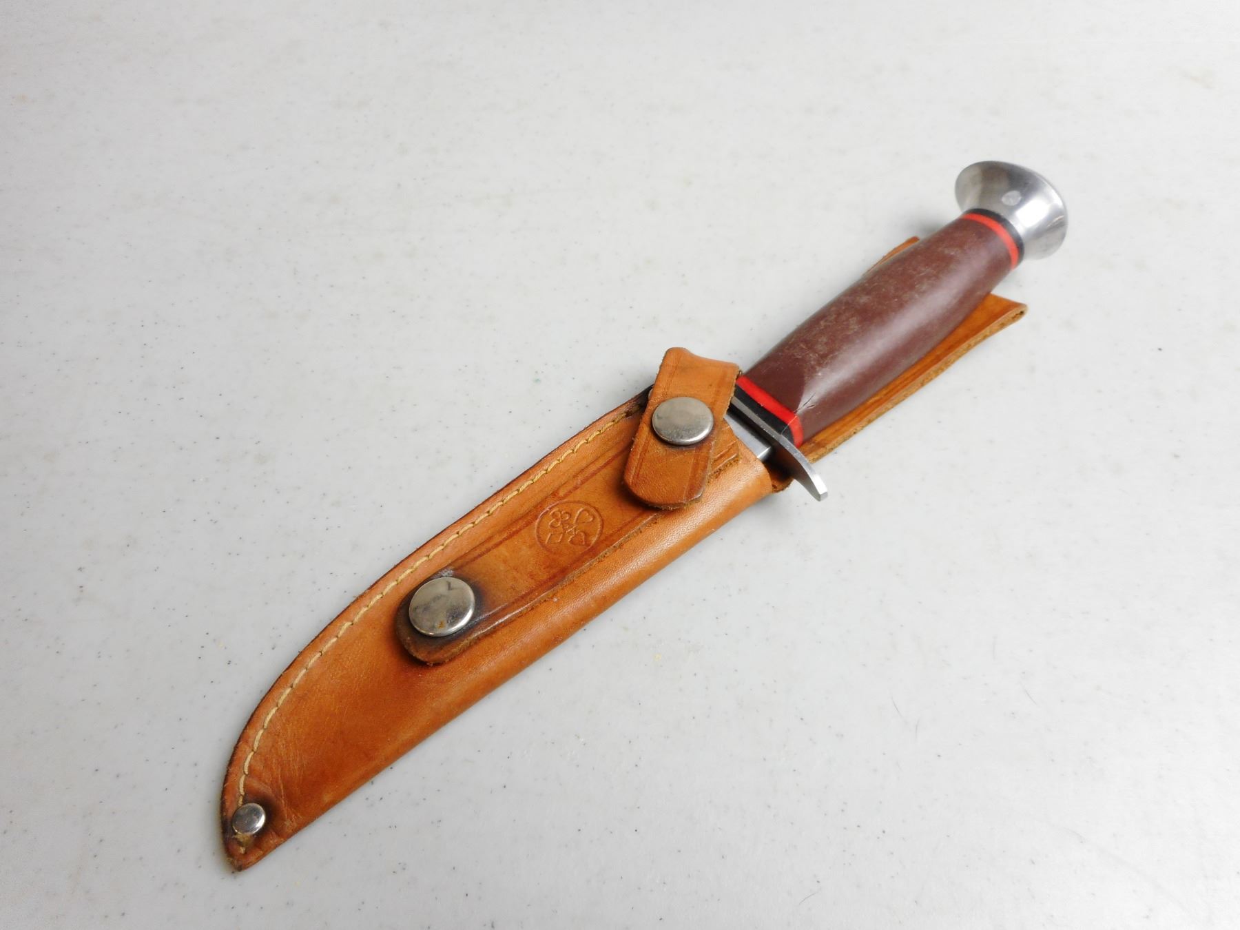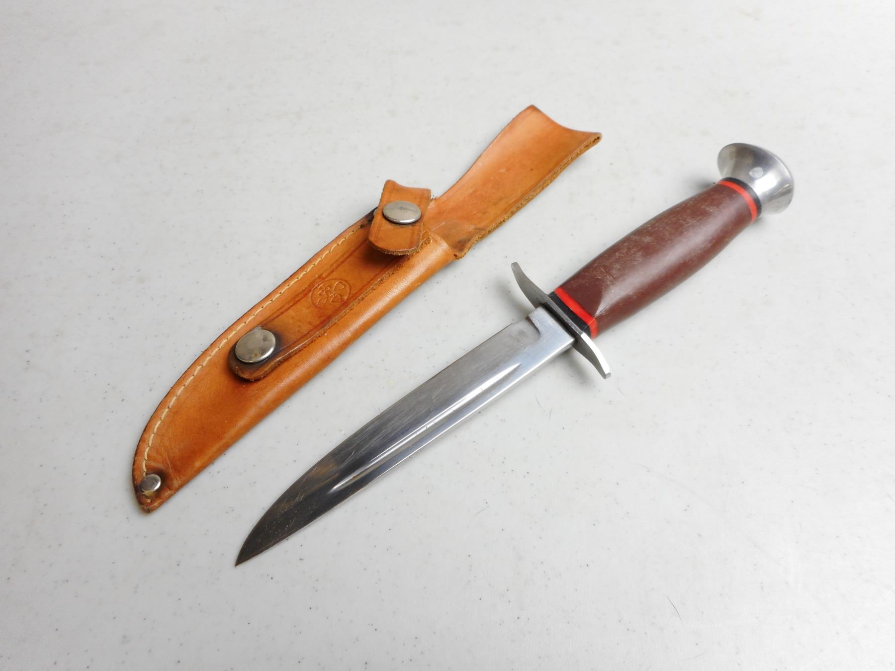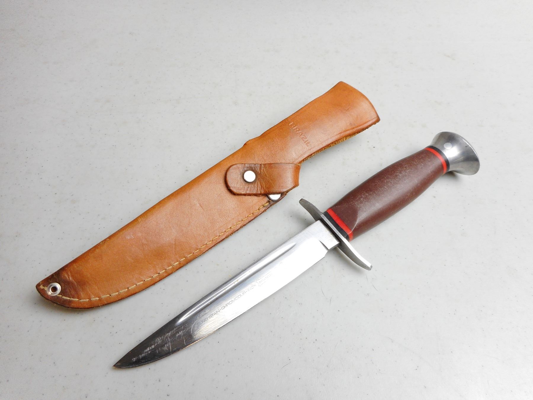 MUNDIAL FIXED BLADE KNIFE WITH SHEATH , 5" BLADE WITH LEATHER SHEATH