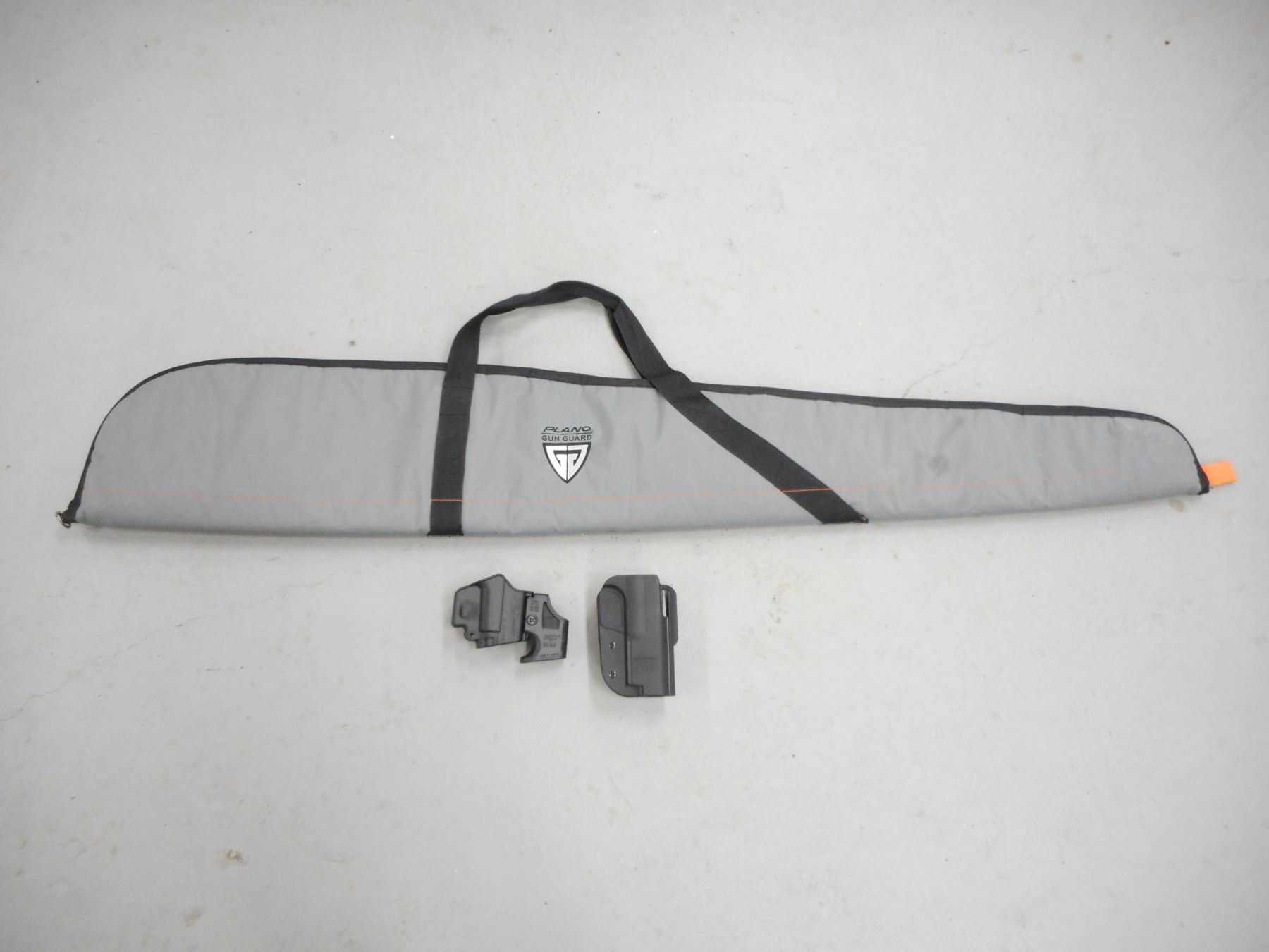 SOFT RIFLE CASE & HOLSTERS , CASE HAS SOME PADDED 51" LENGTH, (1) XD GEAR SPRINGFIELD ARMORY HOLSTER FOR 9MM, .40SW, .45 GAP, .357 SIG., (1) BLADETECH HOLSTER FOR S&W M&P, LOT OF 3