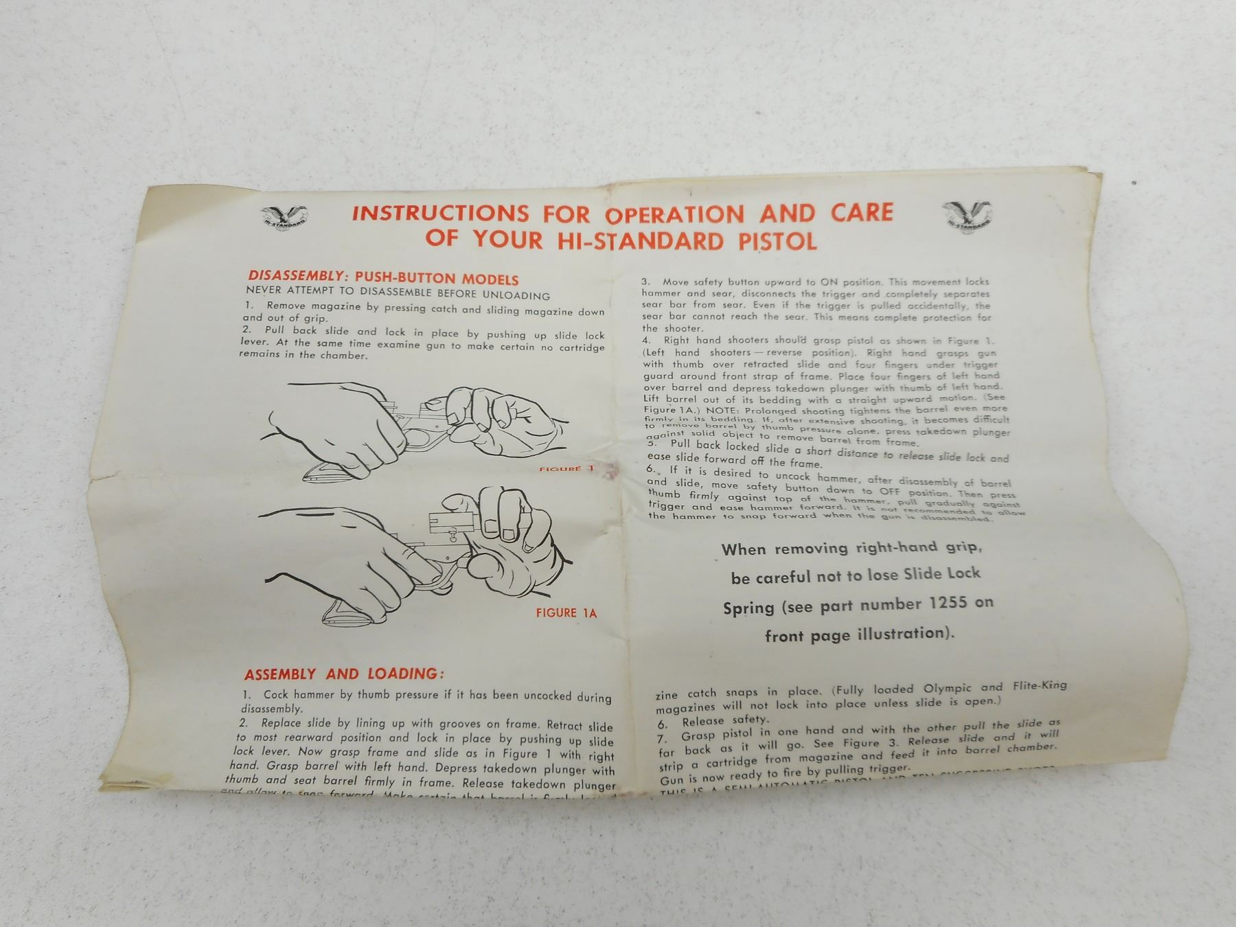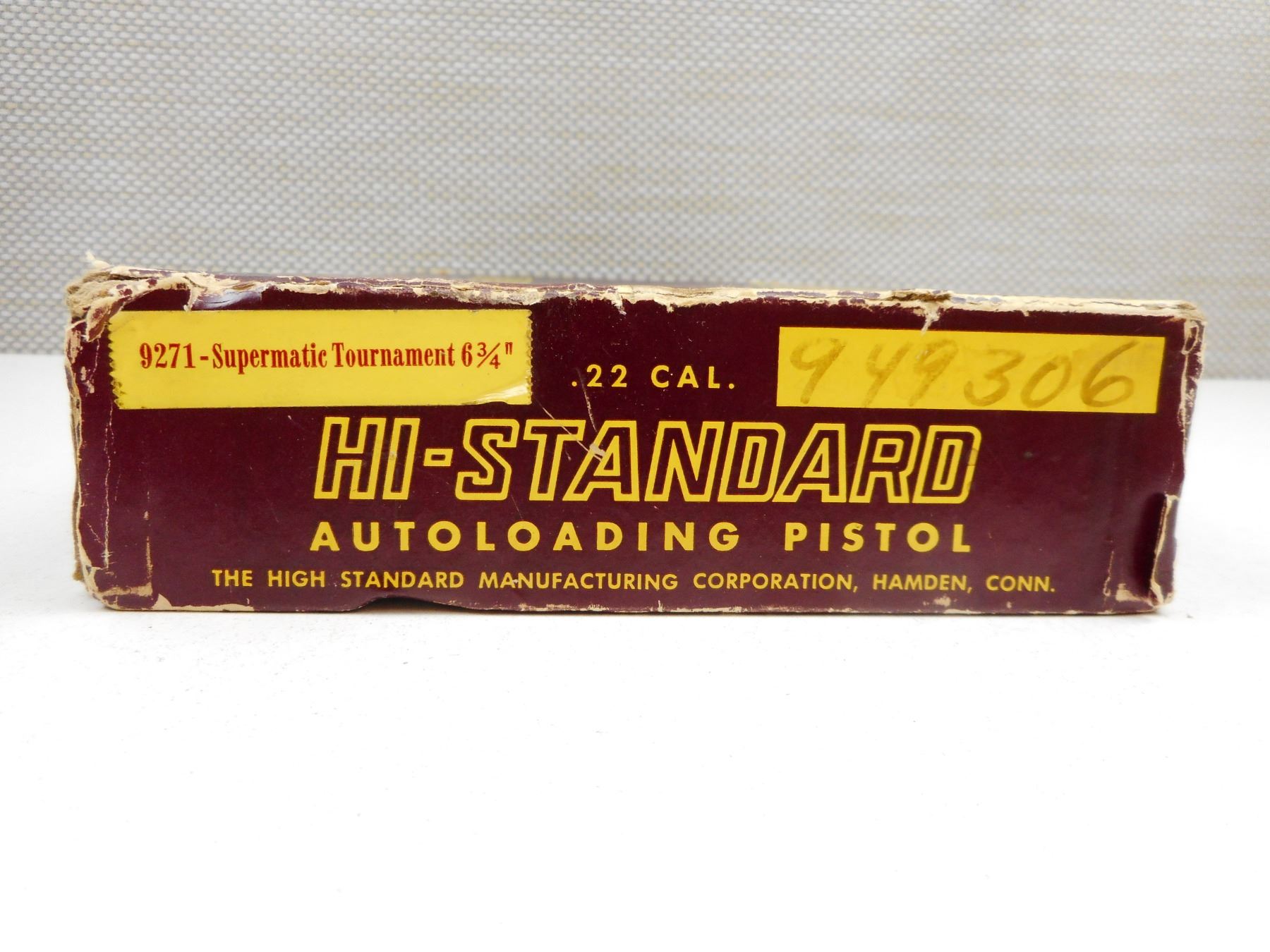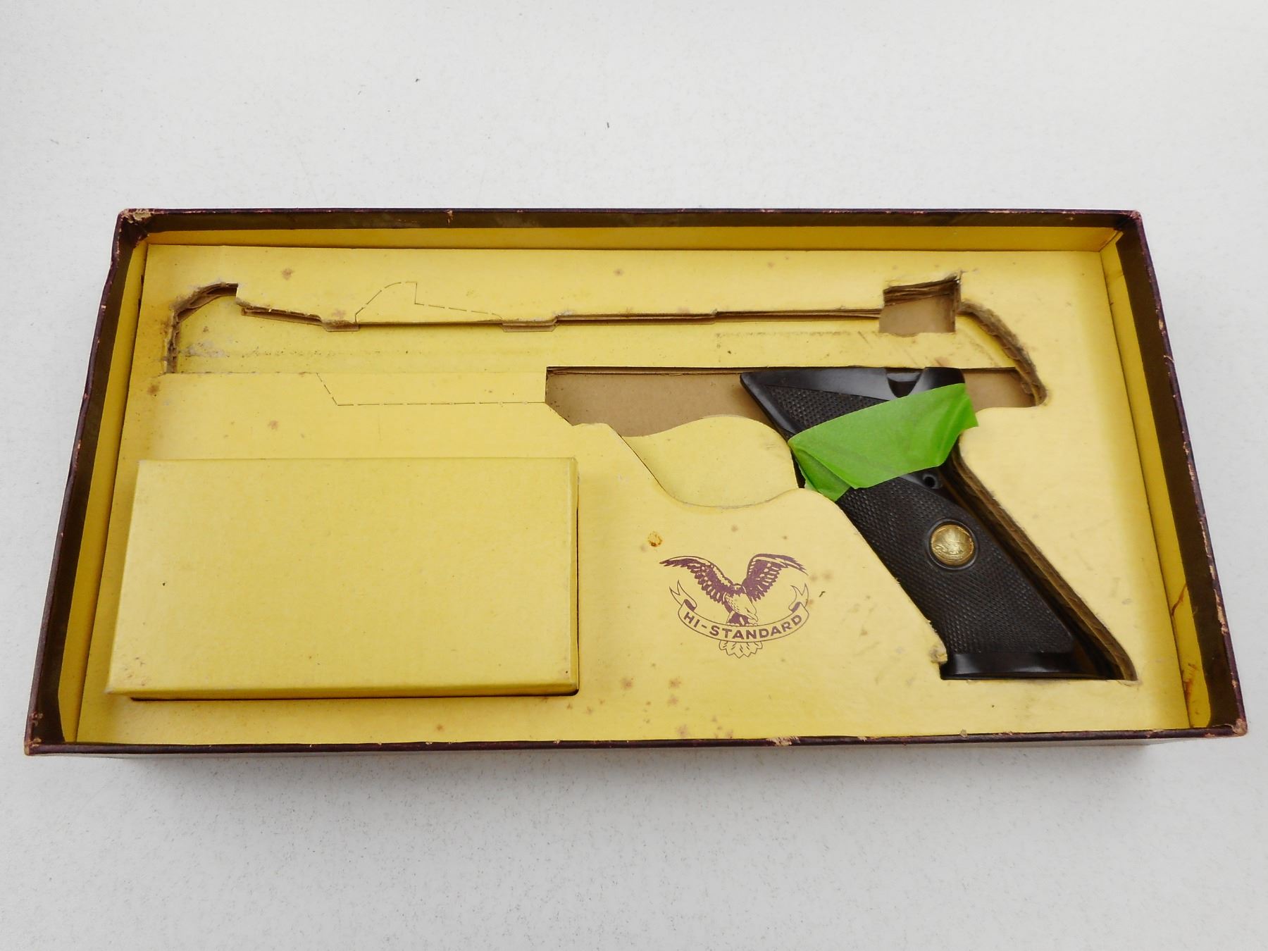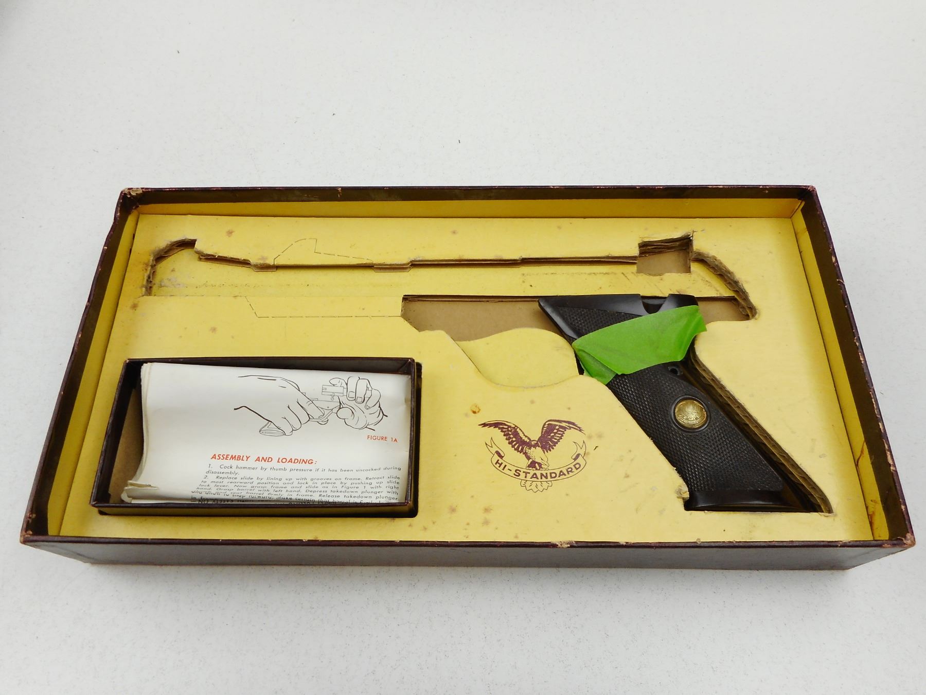 HI STANDARD PISTOL BOX & ACCESSORIES , BOX FOR HI-STANDARD AUTOLOADING PISTOL 22 CAL 9271- SUPERMATIC TOURNAMENT WITH GRIPS & INSTRUCTIONS