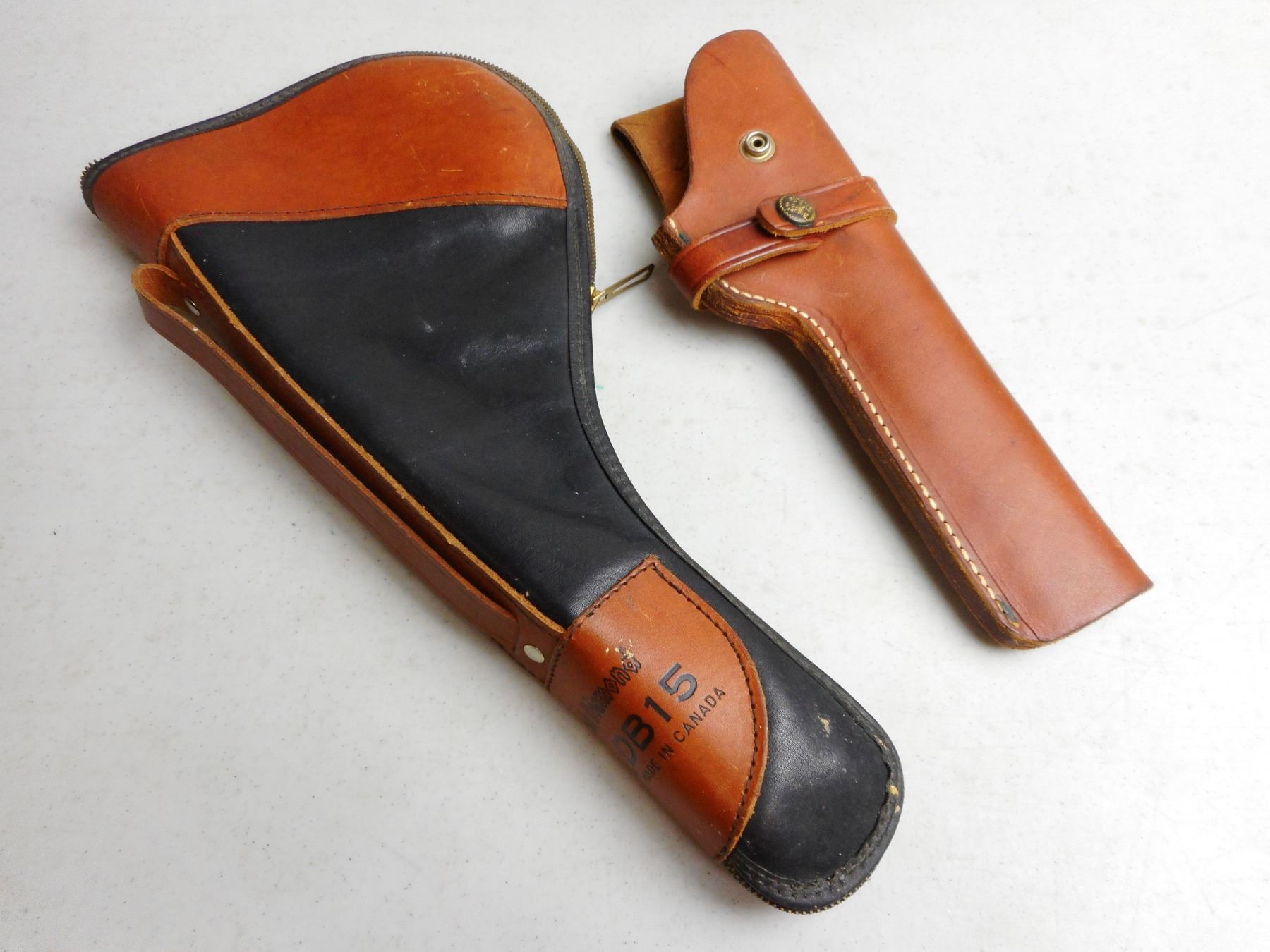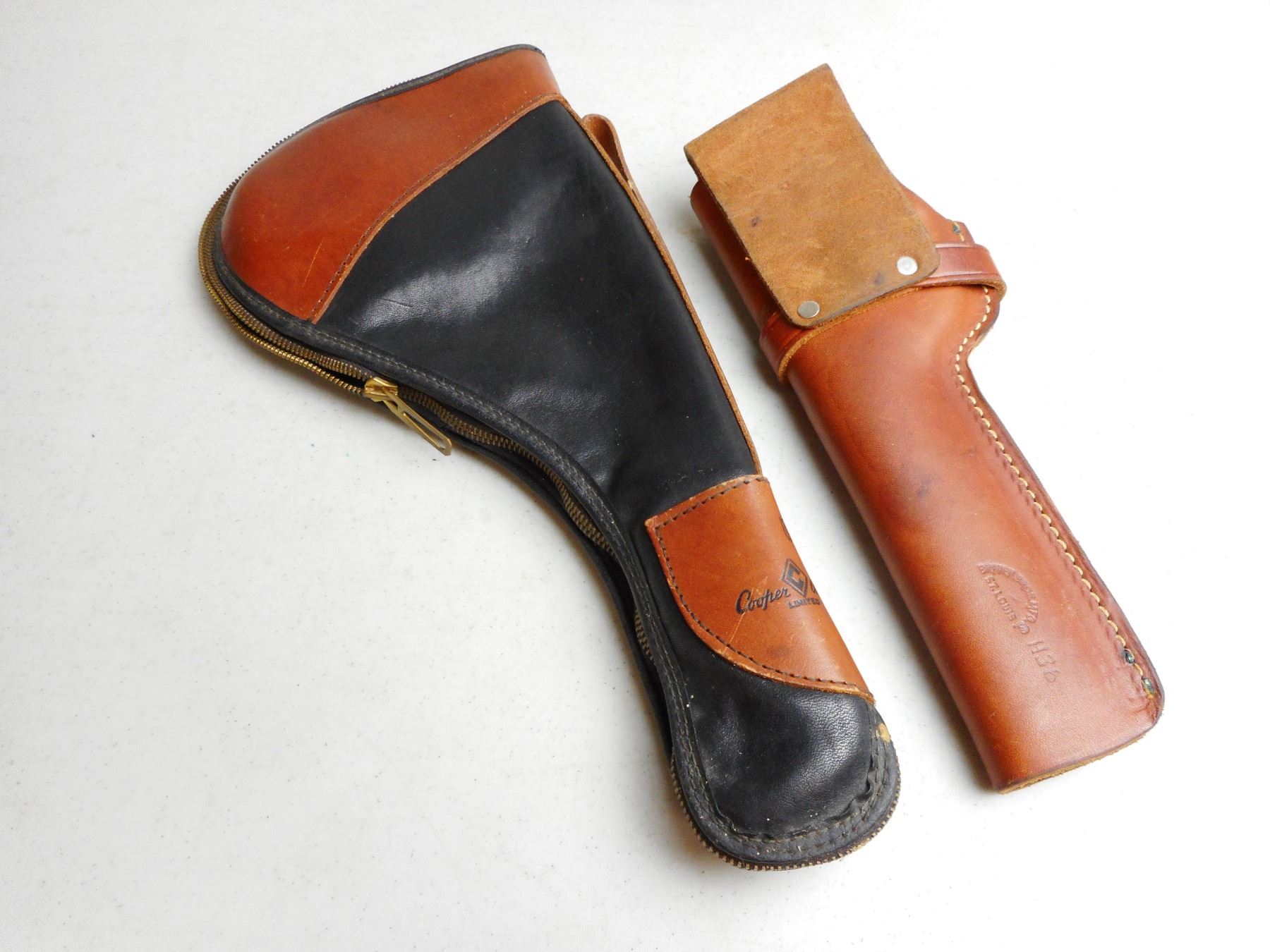 LEATHER HOLSTER & SOFT HANDGUN CASE , (1) BRAUER BROS LEATHER HOLSTER, (1) COOPER WEEKS BLACK DIAMOND DB15 SOFT HANDGUN CASE, LITTLE PADDING , LOT OF 2