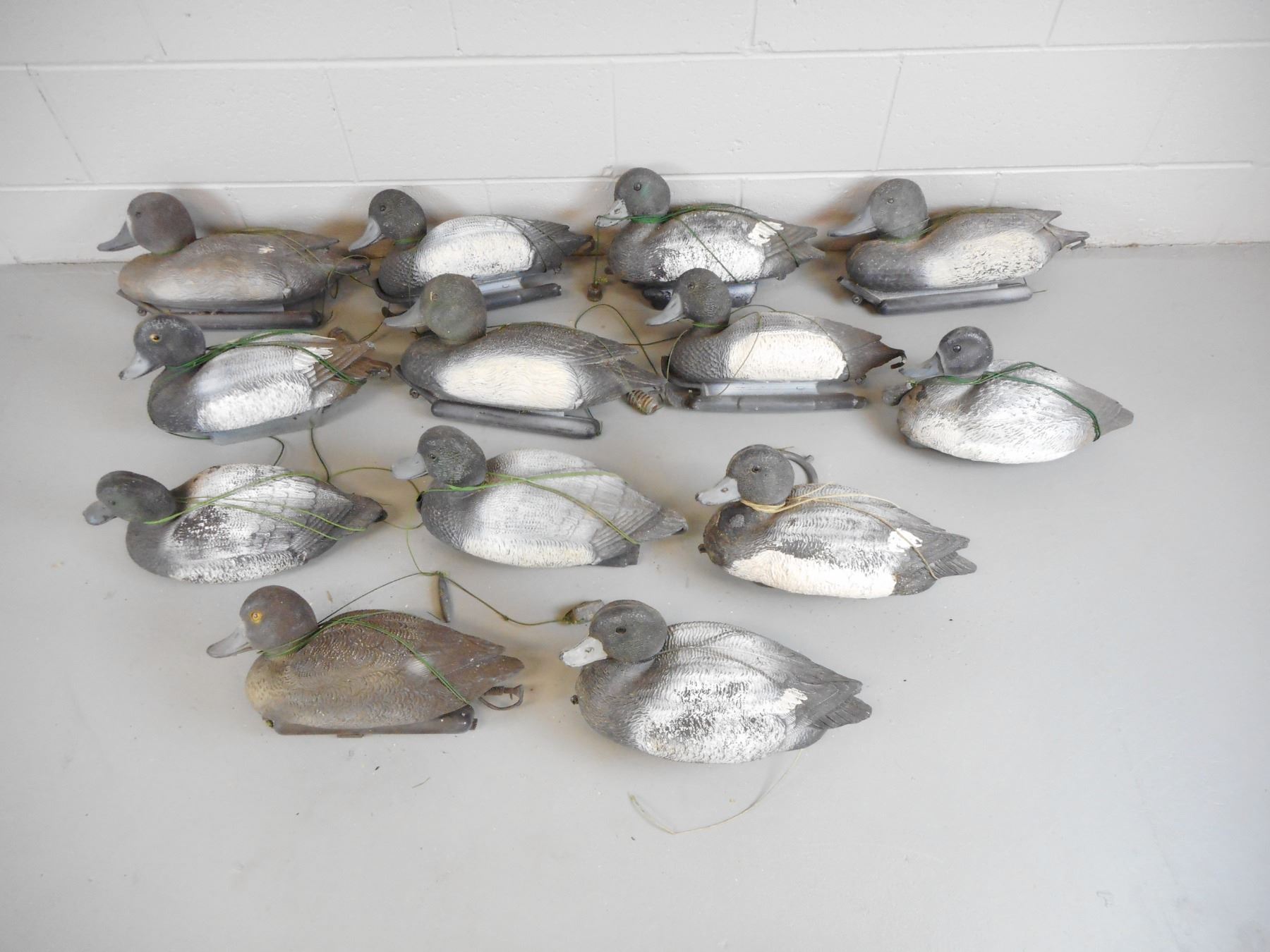 BAG OF DUCK DECOYS , FULL DUCK DECOYS: (1) IS MISSING WEIGHT, LOT OF 13