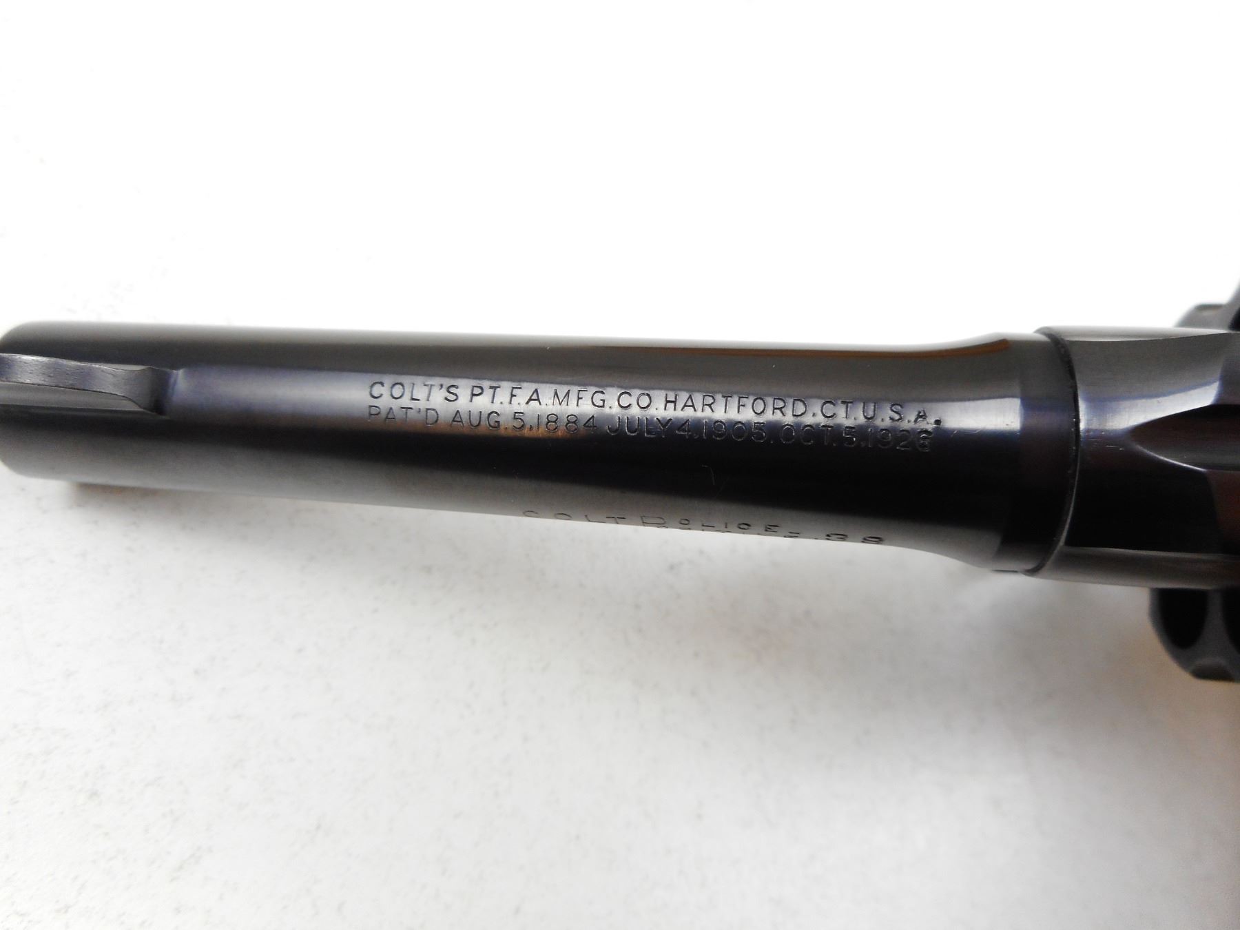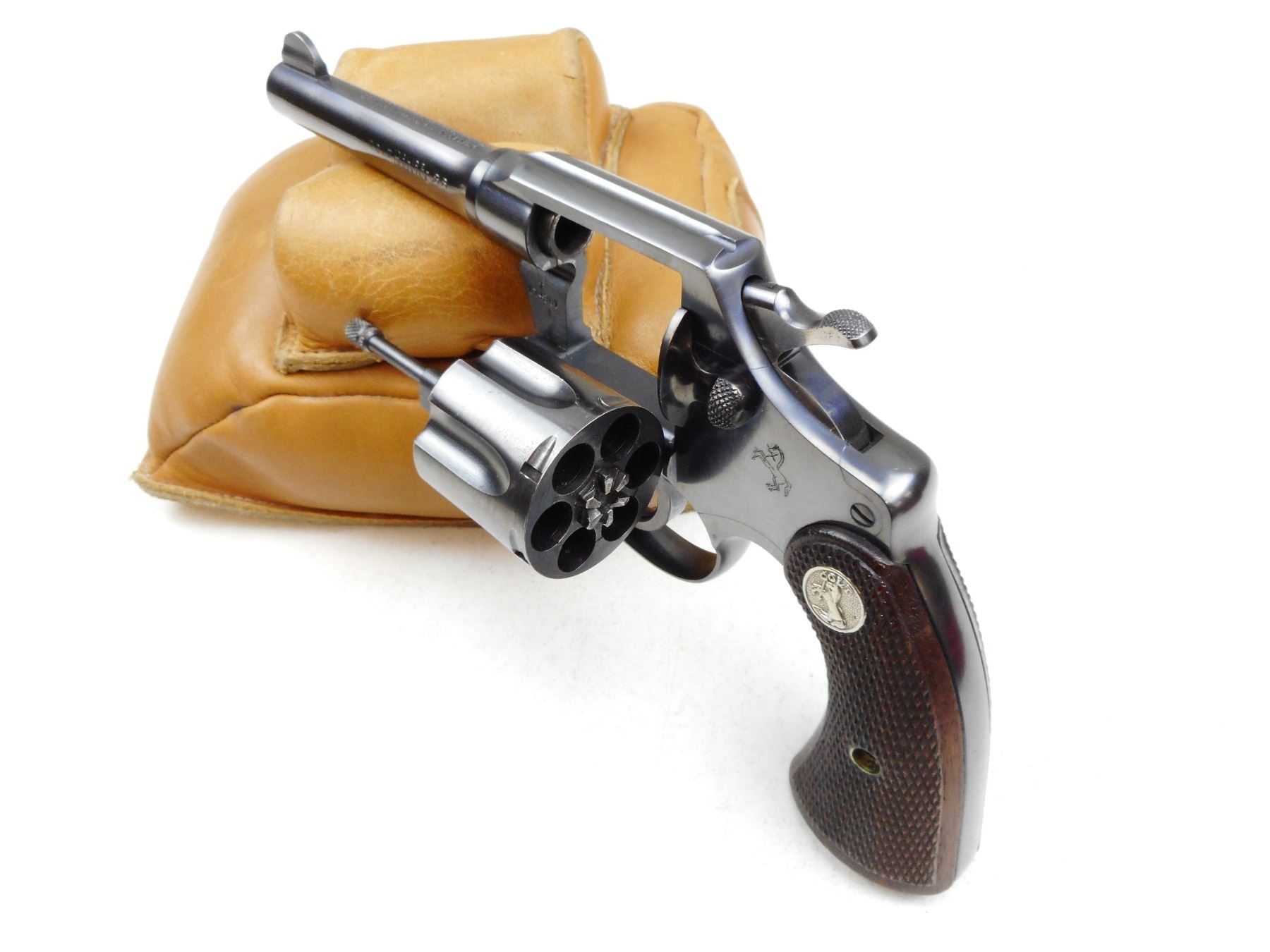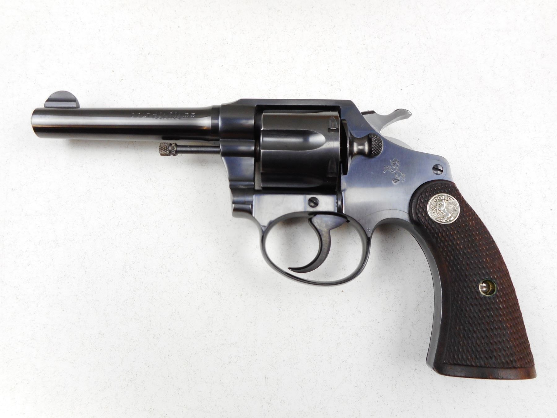 COLT , MODEL: POLICE POSITIVE 38 , CALIBER: 38 S&W SPECIAL , NOTCH & BLADE SIGHTS, CHECKERED WOOD GRIPS, BLUE FINISH SHOWING MINOR WEAR, TIGHT LOCKUP AND INDEXES WELL, GOOD BORE , SERIAL # 174381 , ACTION: REVOLVER , BARREL LENGTH: 102MM , CONDITION: 8/10 , STOCK # 2281 , CLASS: CANADIAN PROHIBITED CLASS