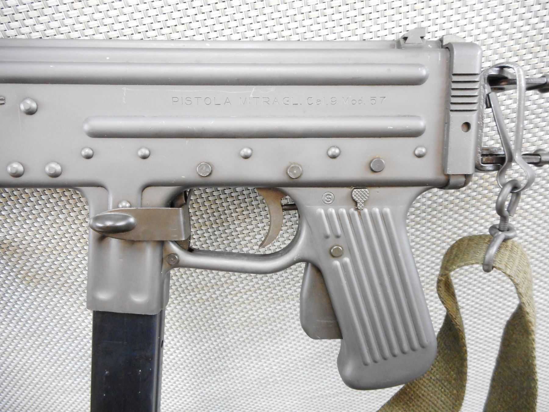 FRANCHI , MODEL: MODEL 57 POLICE , CALIBER: 9MM , COMES WITH MAGAZINE, NOTCH & BLADE SIGHT, FOLDING SKELETON STOCK, CANVAS SLING, PISTOL GRIP, STAMPED GREY METAL FRAME, , SERIAL # N350100 , ACTION: SEMI-AUTOMATIC HANDGUN , BARREL LENGTH: 206MM , CONDITION: 9/10 , STOCK # 2747 , CLASS: CANADIAN RESTRICTED CLASS