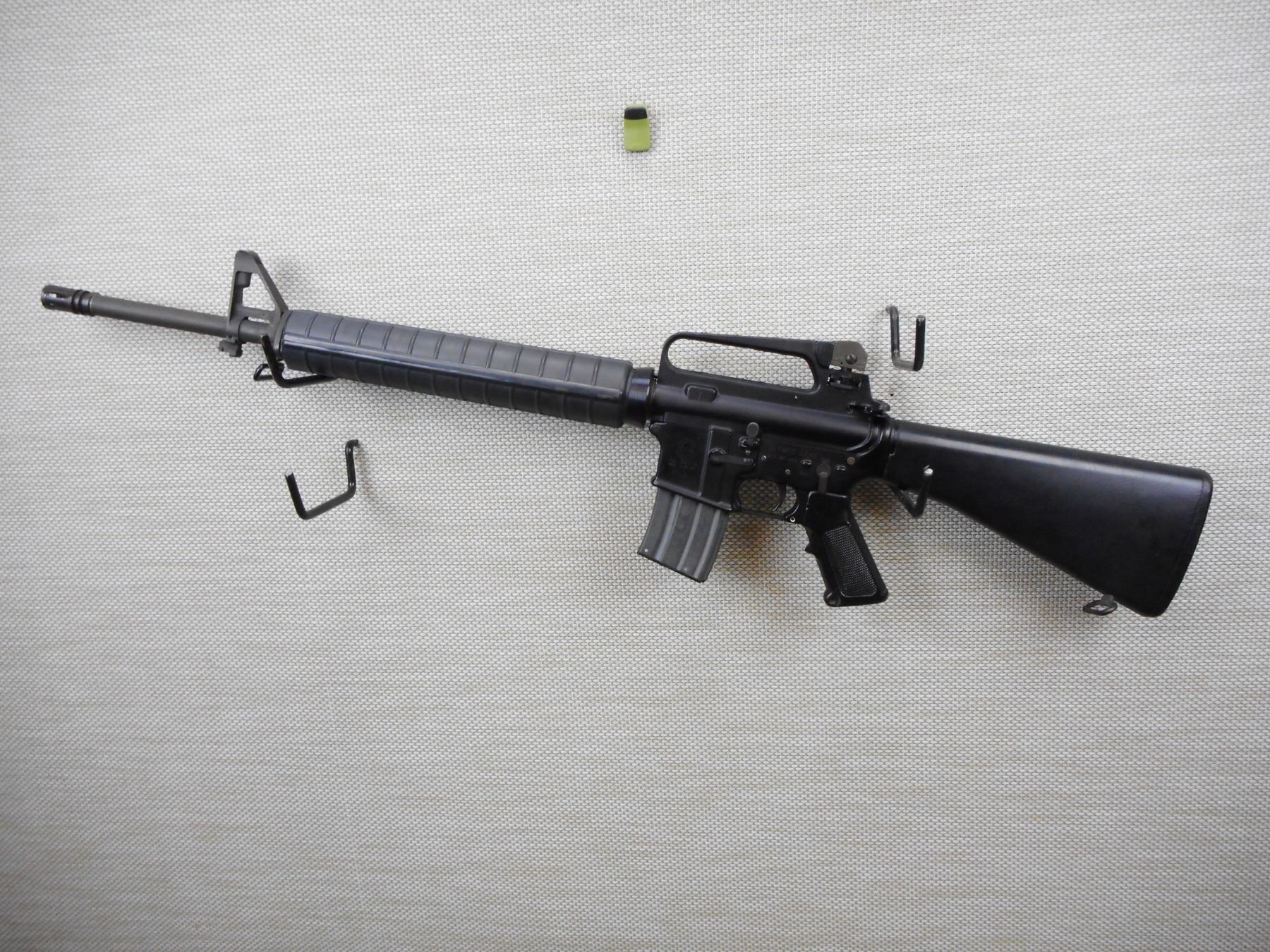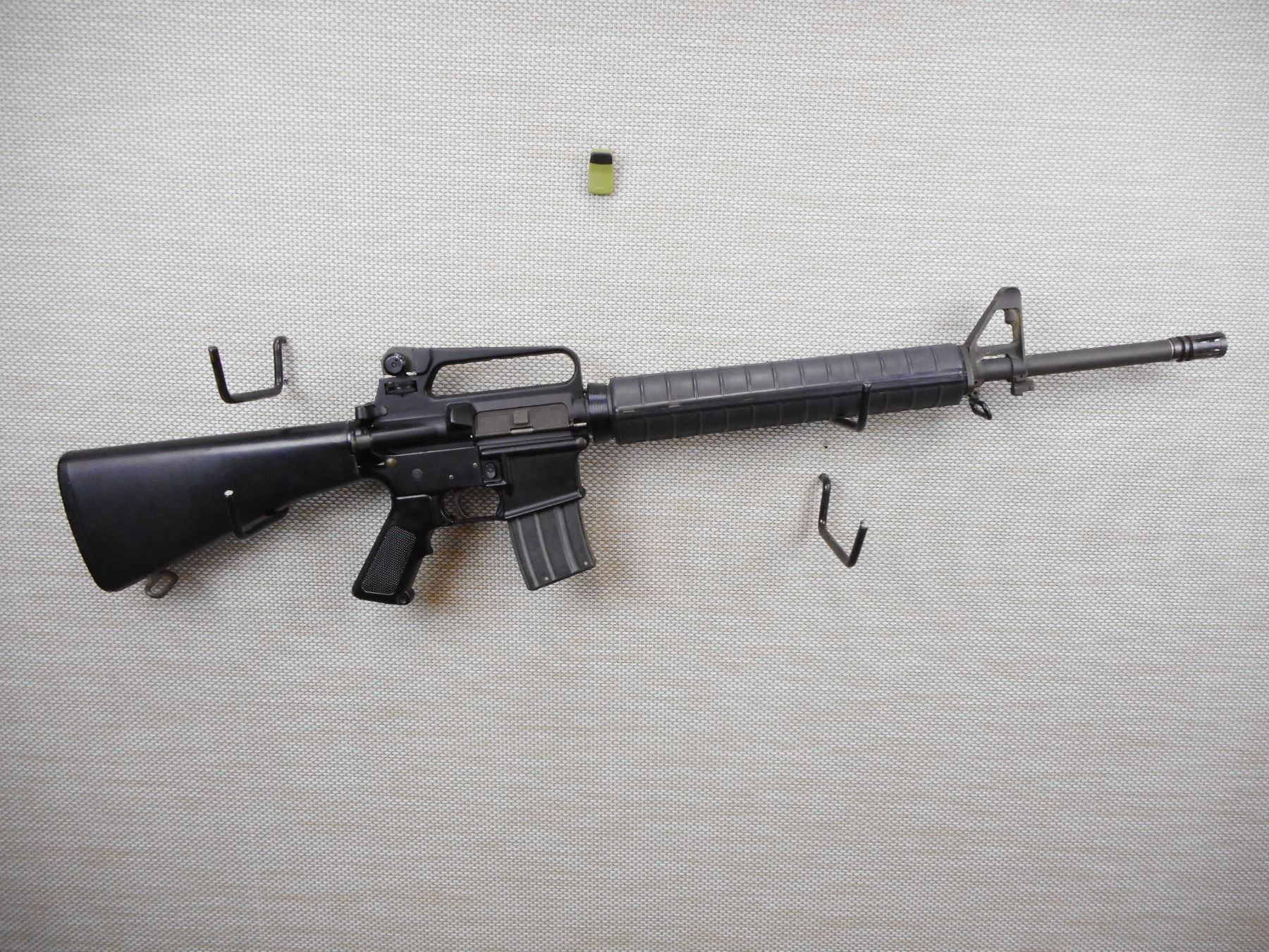 SGW , MODEL: CAR 15AR , CALIBER: 223 REM./5.56 NATO , COMES WITH MAGAZINE, ADJ REAR FLIP PEEP & FRONT POST SIGHT, SYNTHETIC STOCKS AND PISTOL GRIP, SLING LOOP, FLASH SUPPRESSOR, CARRY HANDLE, EXCELLENT BORE, FLAT GREY/BLACK FINISH. RESTRICTED CLASS RIFLE , SERIAL # F7013 , ACTION: SEMI-AUTOMATIC HANDGUN , BARREL LENGTH: 508MM , CONDITION: 9/10 , STOCK # 2808 , CLASS: CANADIAN RESTRICTED CLASS